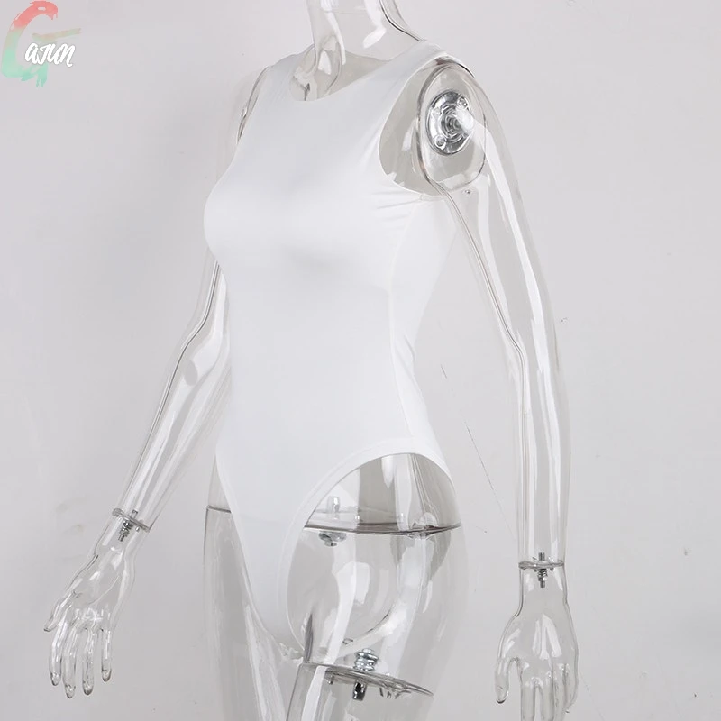 Женское боди без рукавов с круглым вырезом, однотонная Обтягивающая...