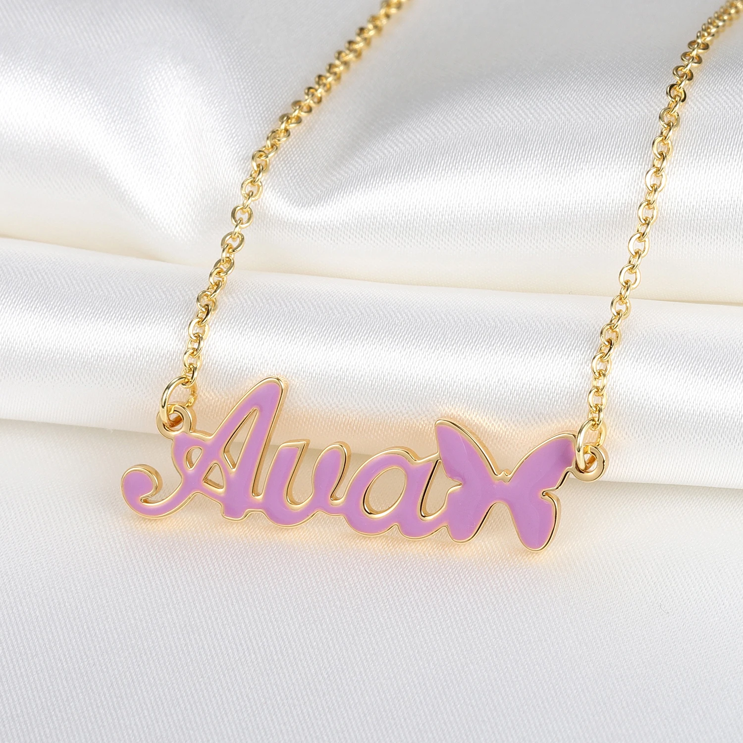 Ожерелье с именем бабочки на заказ, персонализированные ювелирные изделия из нержавеющей стали с золотым покрытием, женское колье с надписью кулон-табличка с именем