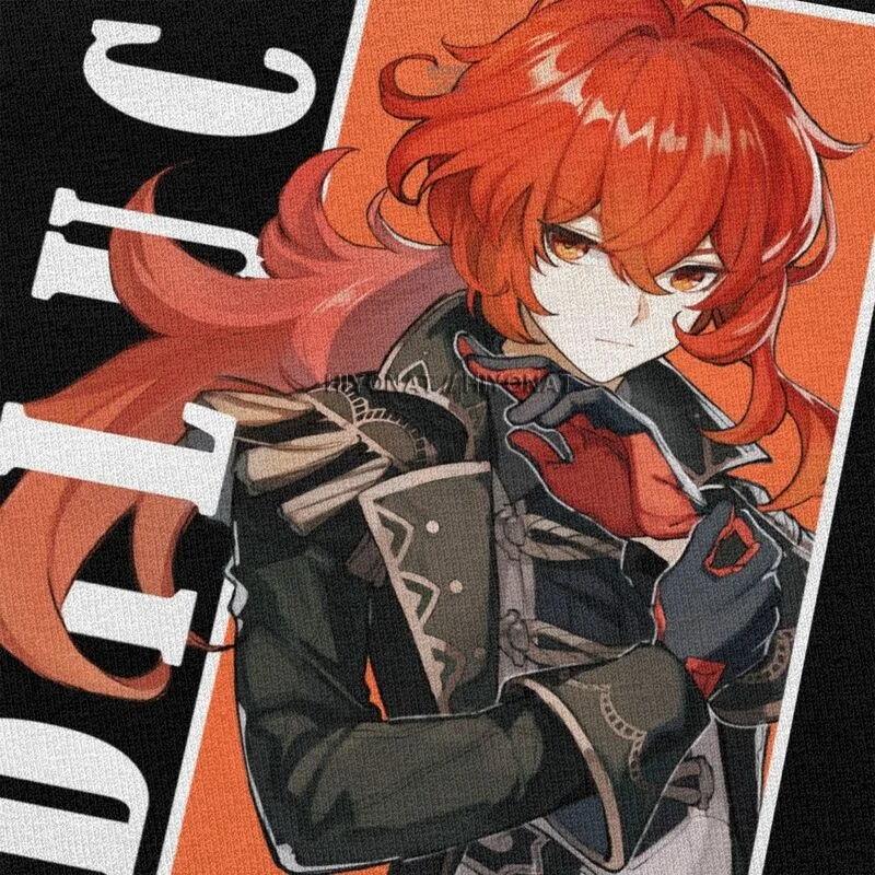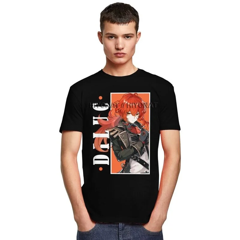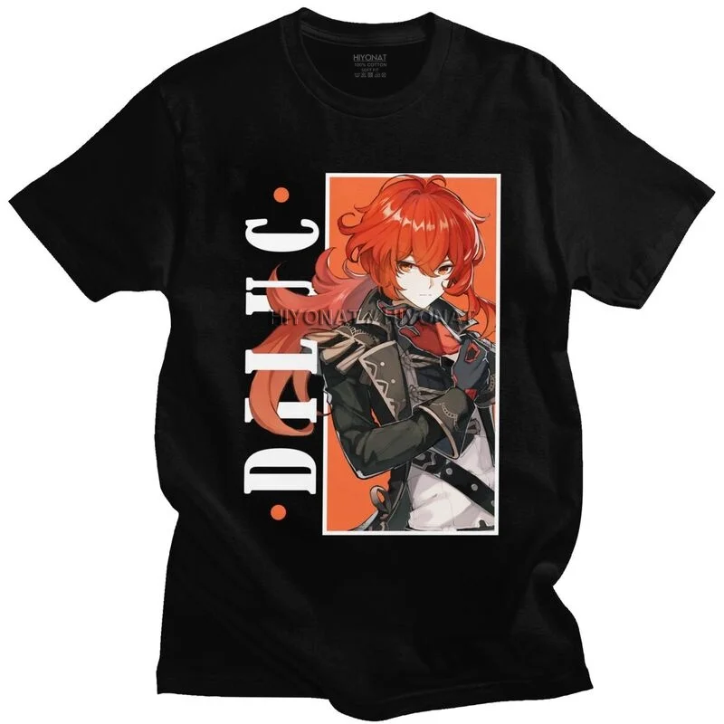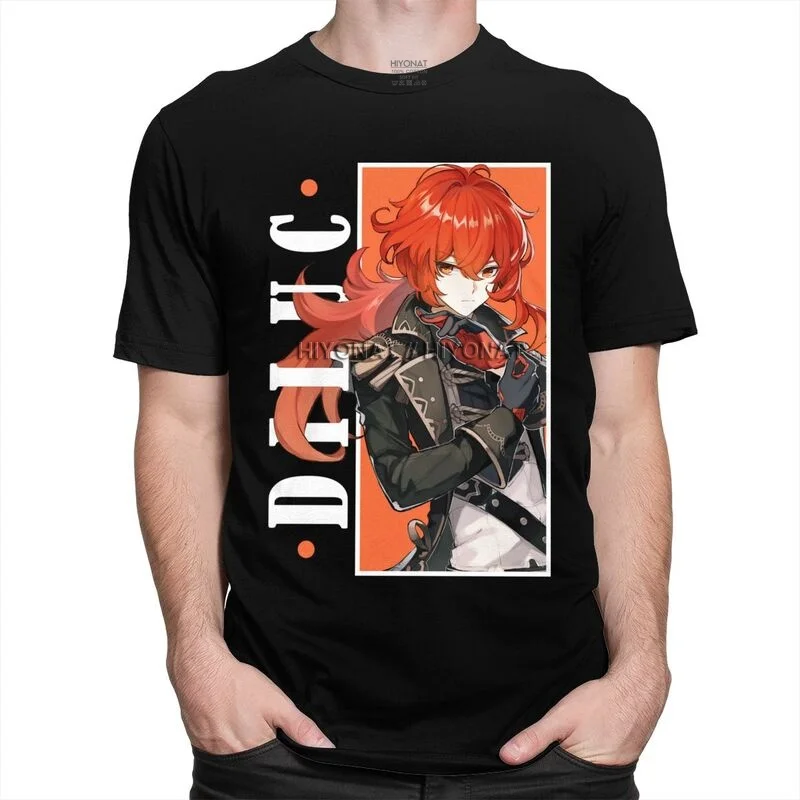 Мужские Genshin воздействия Diluc футболка хлопковая футболка с коротким рукавом модная футболка с рисунком для отдыха с рисунком из аниме футболка Свободная одежда