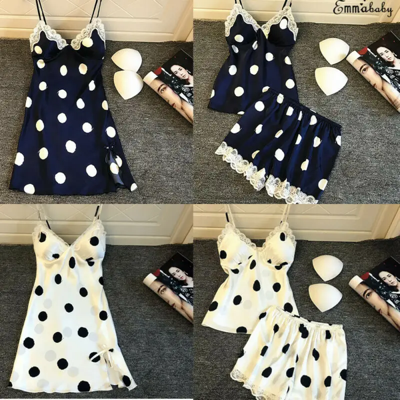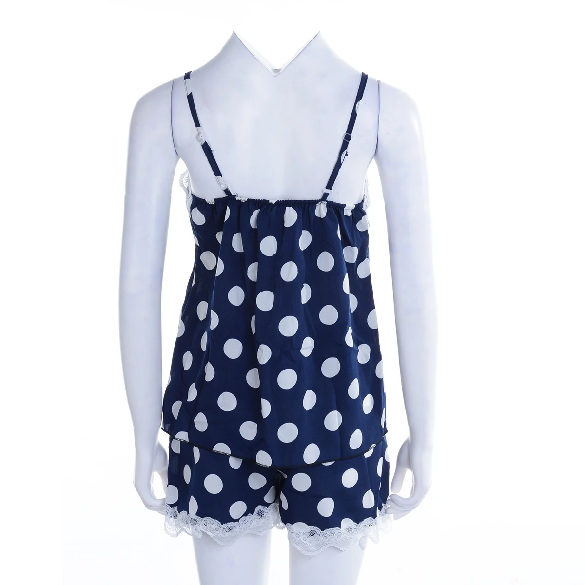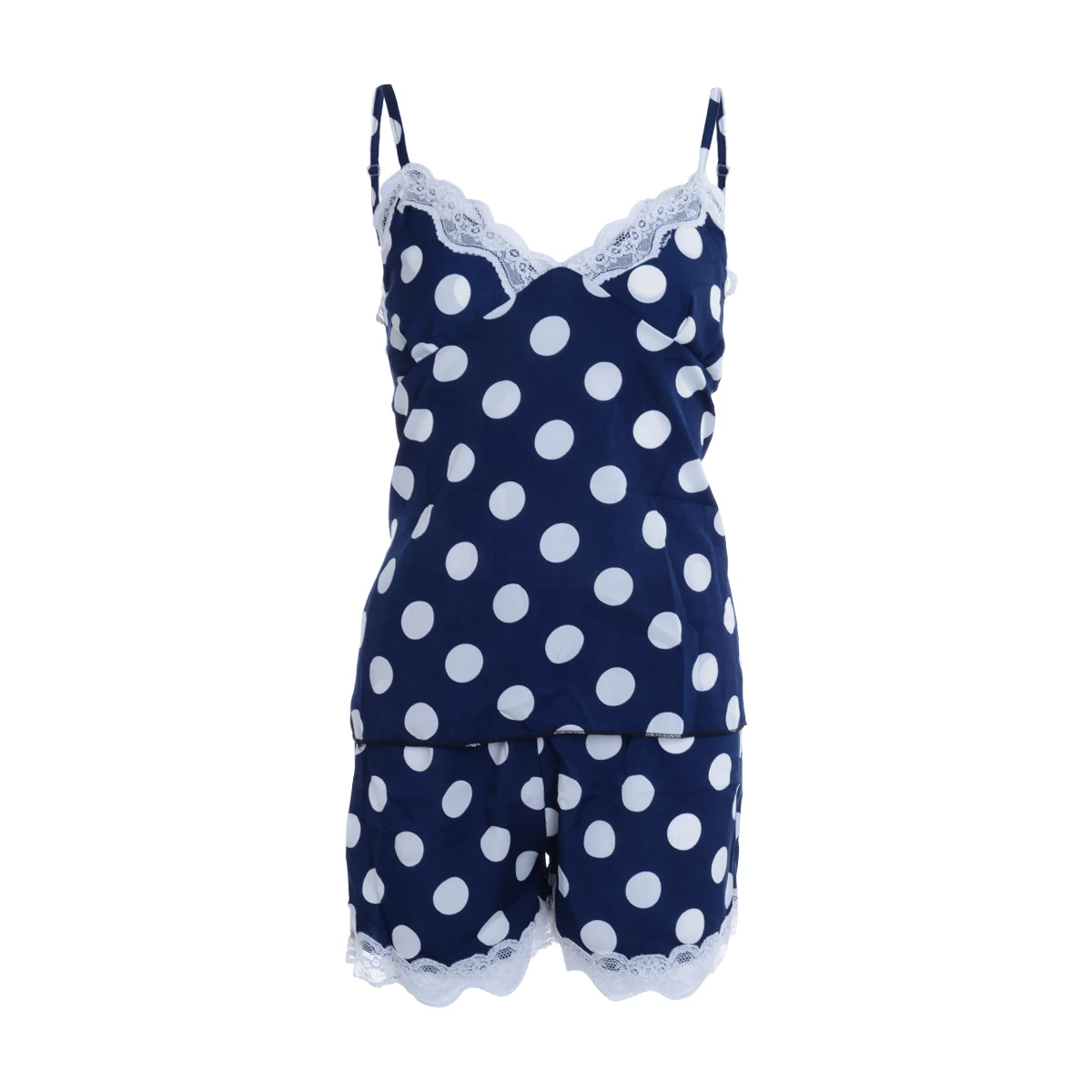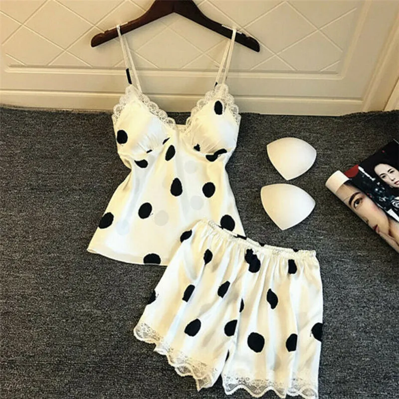 Новинка, Женская атласная одежда для сна, Женская шелковая пижама в горошек, женские милые комплекты из 2 предметов с повседневными пижамными комплектами