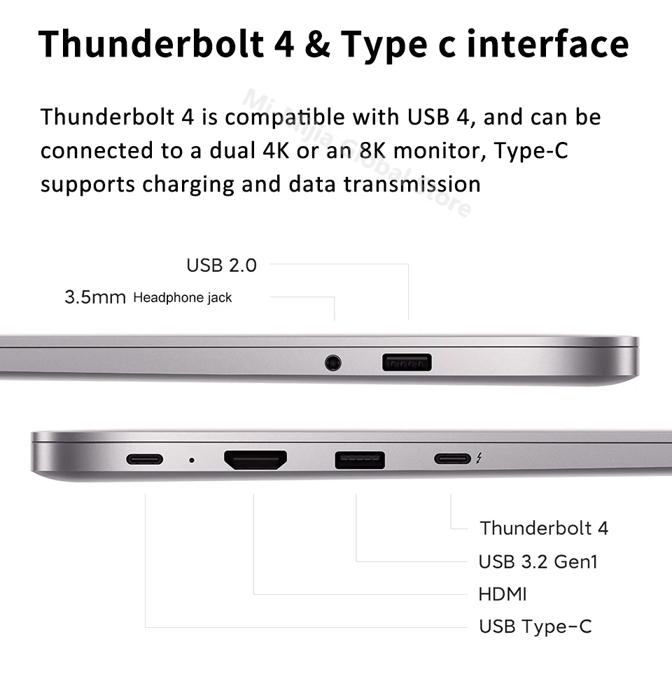 USB-C интерфейс * 1, поддержка зарядки и передачи данныхThunderbolt4 * 1Интерфейс USB2.0 * 1Интерфейс USB3.2gen1 * 13,5 мм разъем для наушников микрофона * 1Интерфейс HDMI * 1