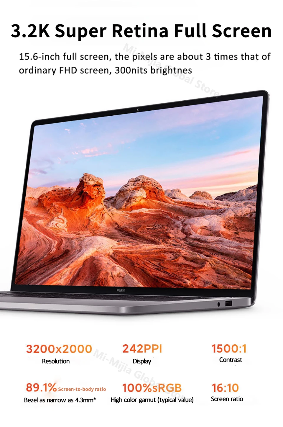 Новейший xiao Mi RedmiBook Pro 15 ноутбук с процессором Intel Core i7-11370H MX450 15,6 дюймовый ноутбук Mi 100% sRGB 3,2 K FHD экран монитора компьютера