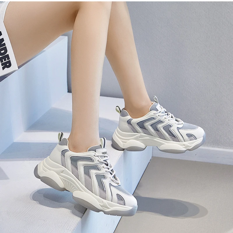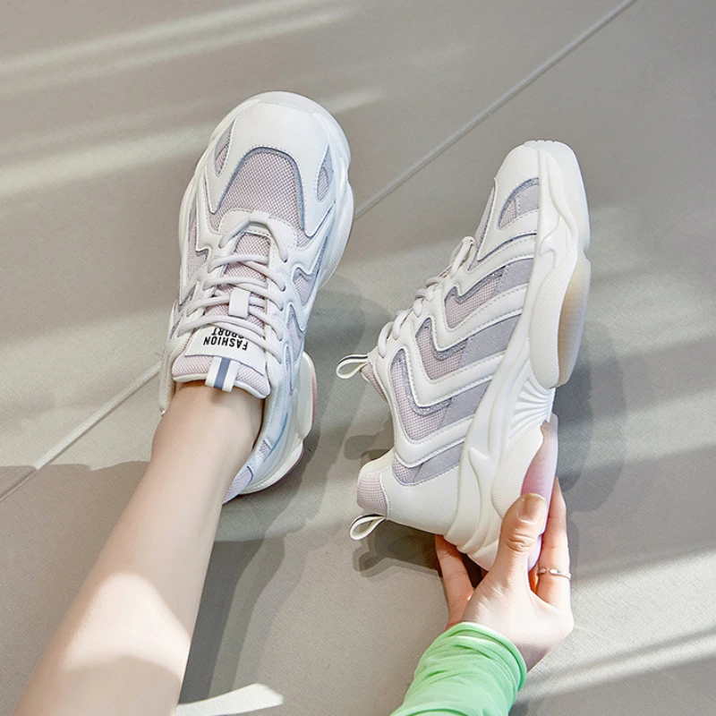 Кроссовки женские из спилка и сетки, дышащие, на толстой платформе, 2021