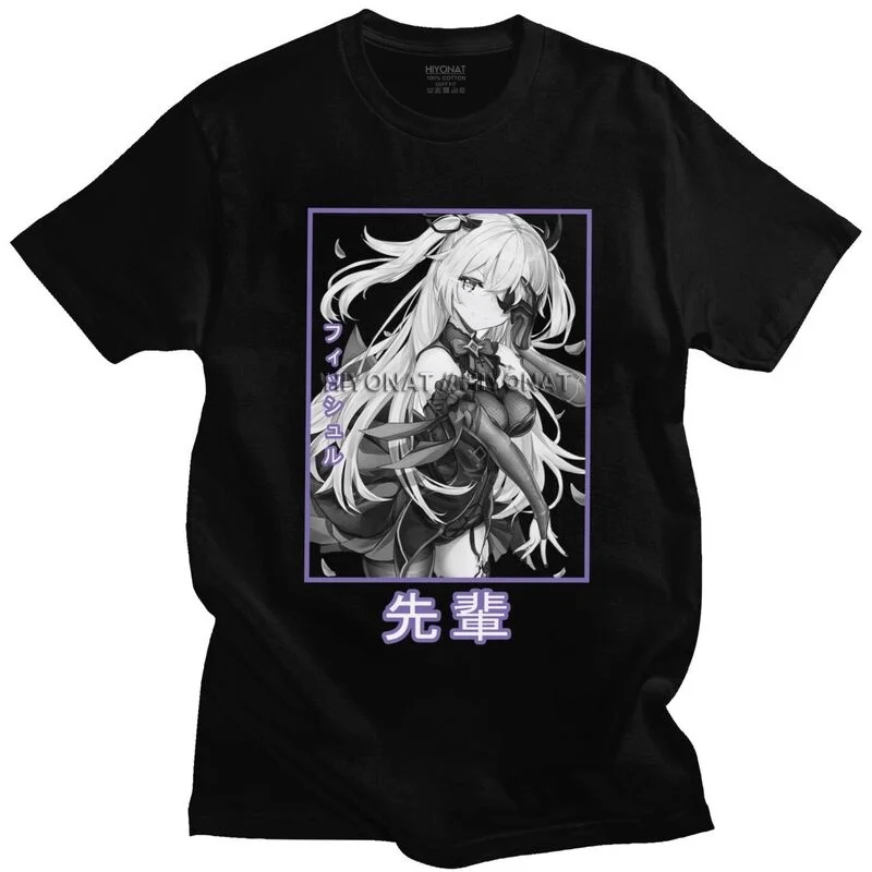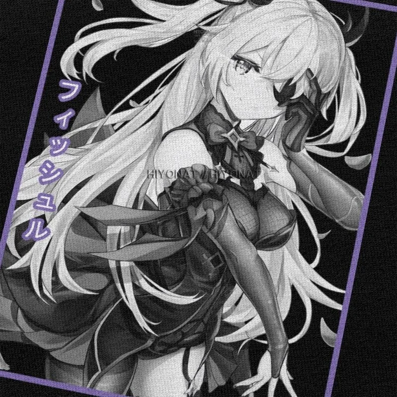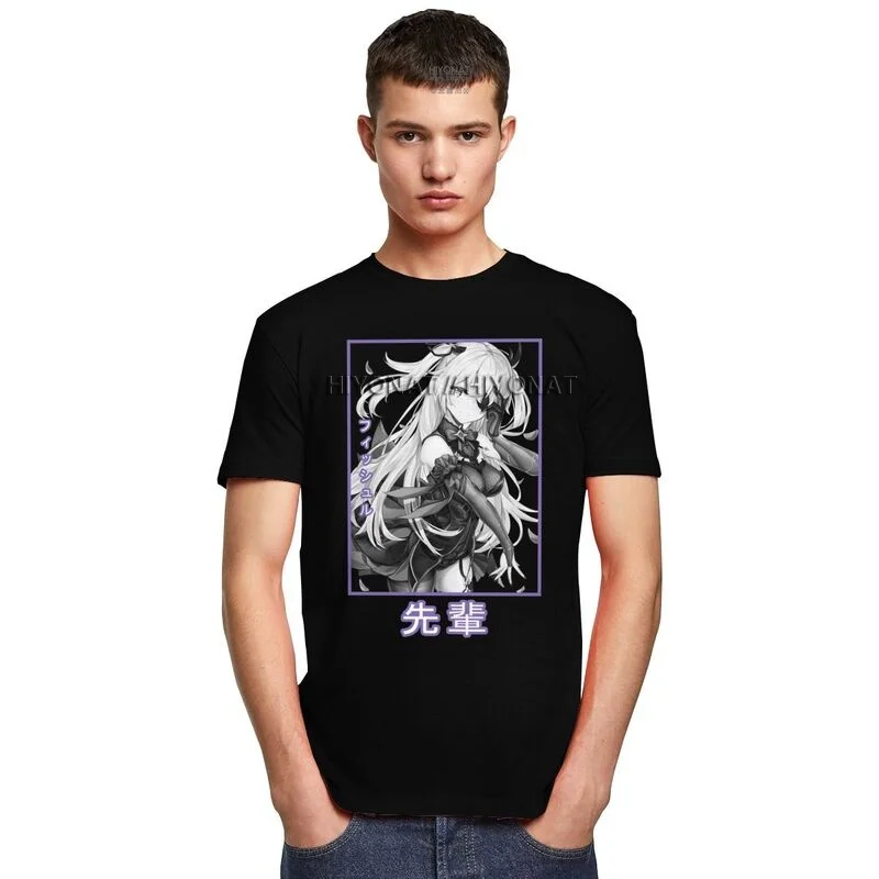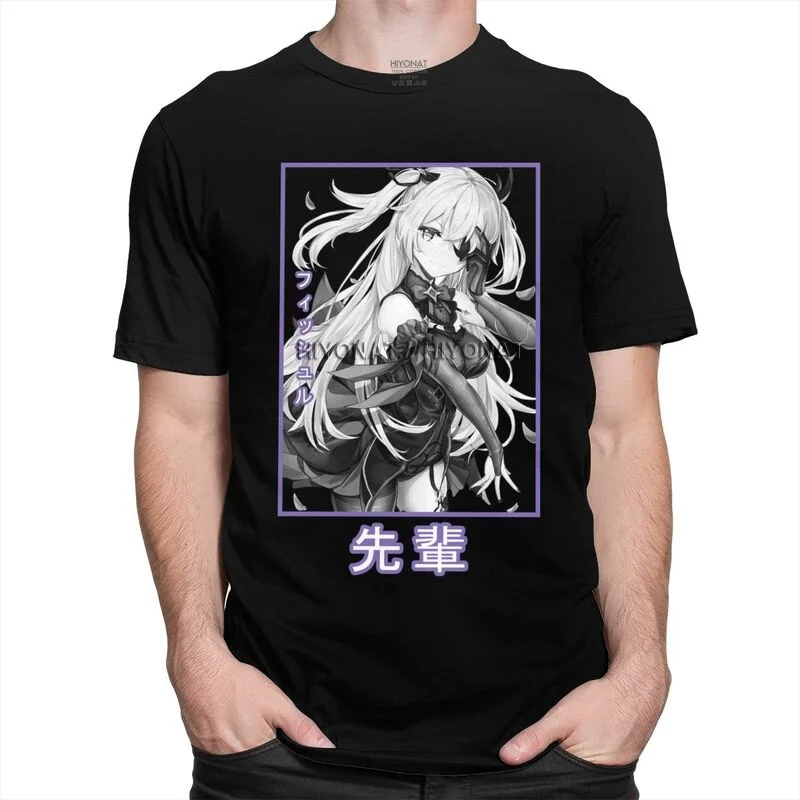 Мужская футболка Genshin Impact Fischl, уличная одежда хлопковая футболка с коротким рукавом, Повседневная футболка, топы в стиле Харадзюку, японская игра-аниме
