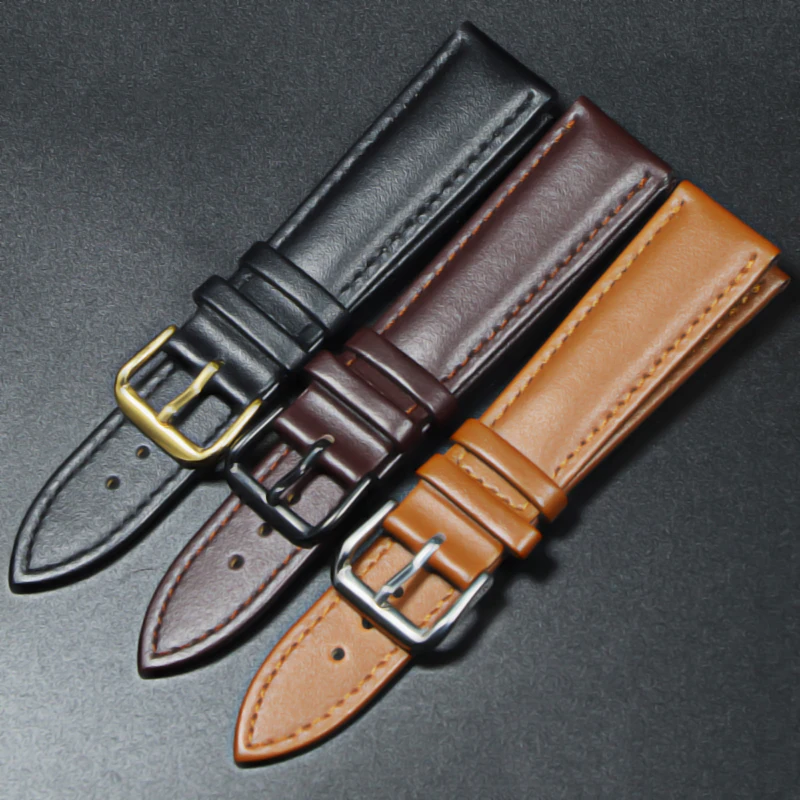 Ремешок кожаный из мягкого материала для часов, браслет для наручных часов 18 мм 20 мм 22 мм 24 мм с серебристой пряжкой из нержавеющей стали
