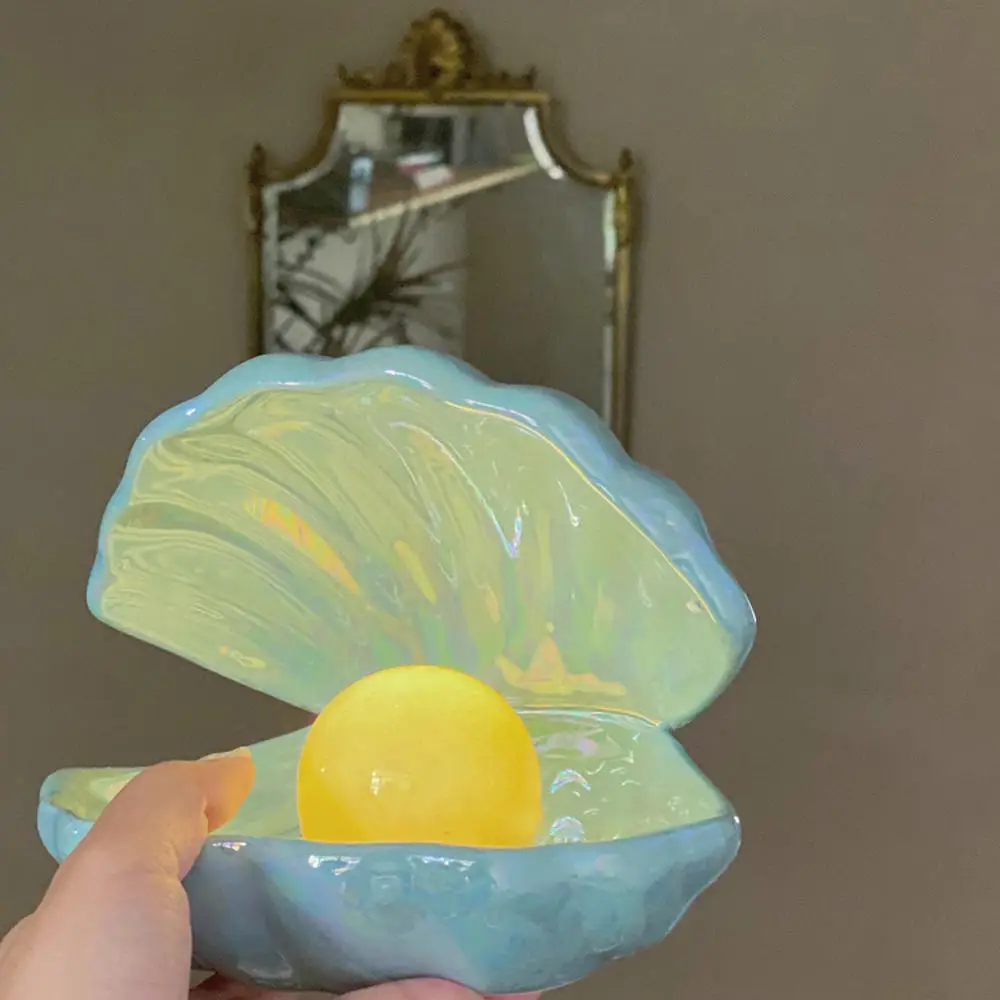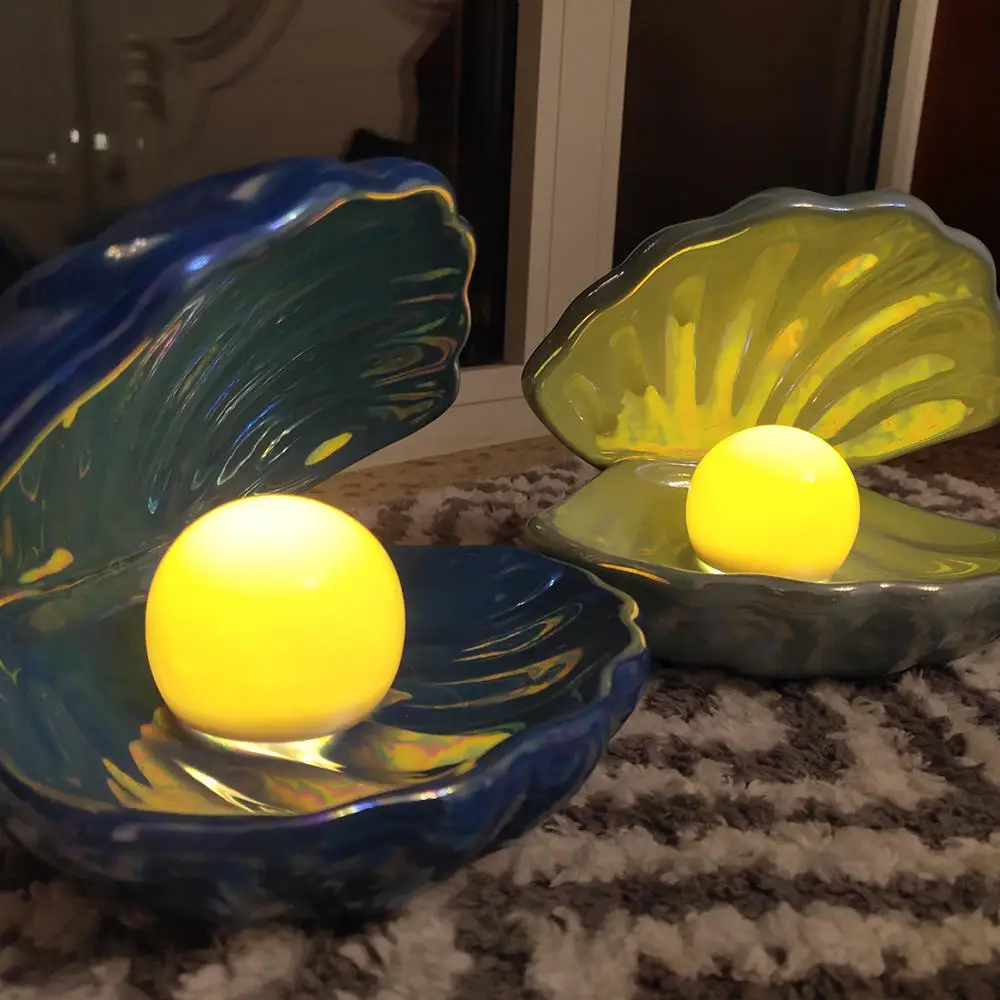 Керамическая жемчужная лампа в виде ракушки, ночник для спальни, Сказочная раковина для девушек, домашнее украшение, прикроватный светильник, подарок для девушки