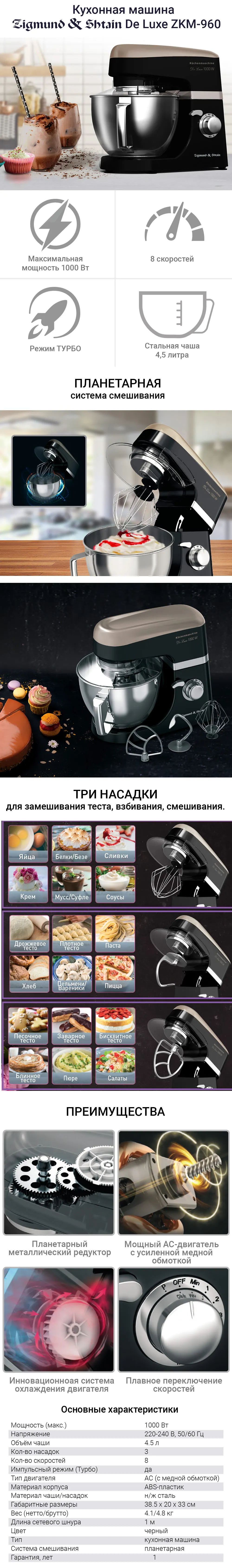 Кухонный комбайн Zigmund Shtain De Luxe ZKM-960 планетарный миксер