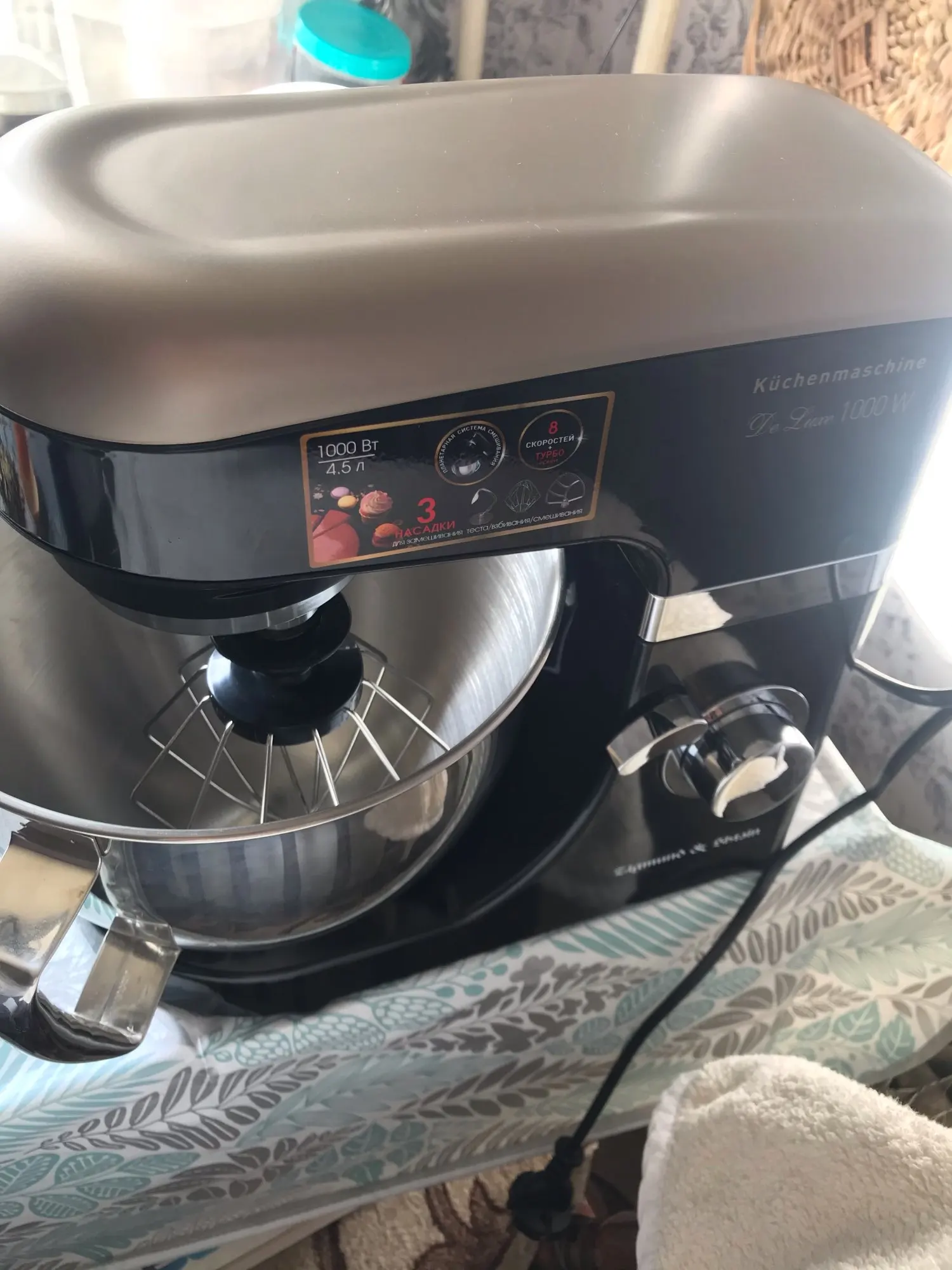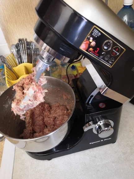 Отличный миксер, делала тесто на пельмени, на 1, 2 скорости всё замесил. Фарш приготовила легко, 3 скорость. Посте теста замешиваю фарш, чаша чистая. Сливки взбивала, тесто на блины взбил на 6 скорости однородно. Насадки металлические и чашу можно мыть в посудомойке. Брала без акции 5600. Доставили быстро, упакован хорошо. Единственный минус иногда чаша бьёт током. Ребёнок 10 лет справляется и замешивает тесто. Дрожжевое тесто не заводила.