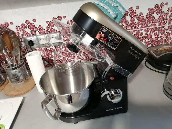 Планетарник реально качественный. Долго думал – взять комбайн «3в1» (бывают такие, это когда на моторный блок миксера еще можно мясорубки и чашу блендера присобачить), но, хоть у нас кухня и не самая маленькая, но, такую дуру здоровую хранить все равно не удобно. А тут другое дело – миксер компактный, стильный, аккуратный, но, мощный. Насадки очень качественные и добротные, мотор крутит быстро, плавно и не очень громко. Насадок 3 – крюк для крутого теста (для пасты, например), венчик для взбивания мусов/кремов/бизе и еще какая то кривая решетка для замешивания жидкого теста, пюре и салатов)) Мы решили начать с бизе – сынишка обожает сладкое)) Да и проще не придумаешь – 4 белка+стакан сахара, вывалил все сразу в чашу, минут 6-7 на максимальной скорости – такой густой мусс получился, что от ложки не отлипал, пришлось толкушкой от кофеварки его в кулинарный шприц пропихивать)) Потом 2 часа в духовке при 100гр – получилось идеально. Мечта повара/кондитера - однозначно рекомендую к покупке!