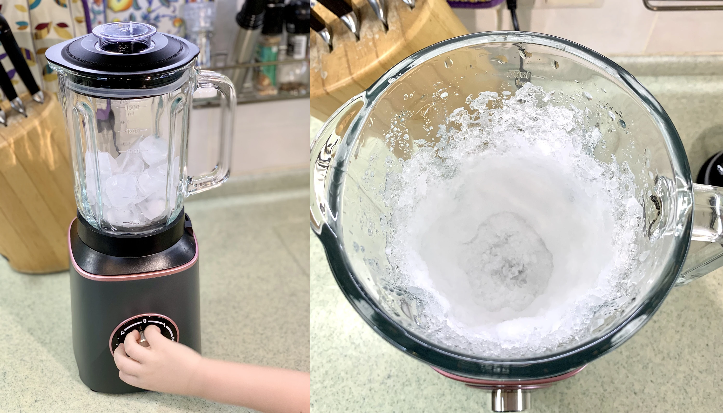 Очень полезная штука в доме–измельчает, взбивает, смешивает, может готовить разные коктейли, смузи, супы-пюре, детские пюре и много другое. Необычная конструкция из изогнутых и зазубренных ножей из очень прочной стали - лёд моментально изнасекомил в снег! Чаша из каленого стекла–толстая/тяжелая, не то что пластик мутноцарапный) Сделал пацану на пробу смузи из чегодоманашлось–в тот же снег изо льда кинул порезаный на части апельсин, сыпал горстку замороженной черной смородины и долил стакан воды (это очень важно, иначе не будет перемешивать!!!), сначала 3-5 импульсов, чтобы все измельчить, а потом буквально минута работы на максимальной скорости, чтобы взбить–и вся эта история превратилась в воздушный смузи, при этом раза в 2 в объеме увеличилась. С молочным коктейлем та же история – мороженое, молоко, сиропа немного – минута работы и готово. Как в детстве при СССР было по вкусу)) В выходные мохито на нем забодяжу, у жены ДР как раз будем праздновать – удивлю гостей)) Рекомендую!