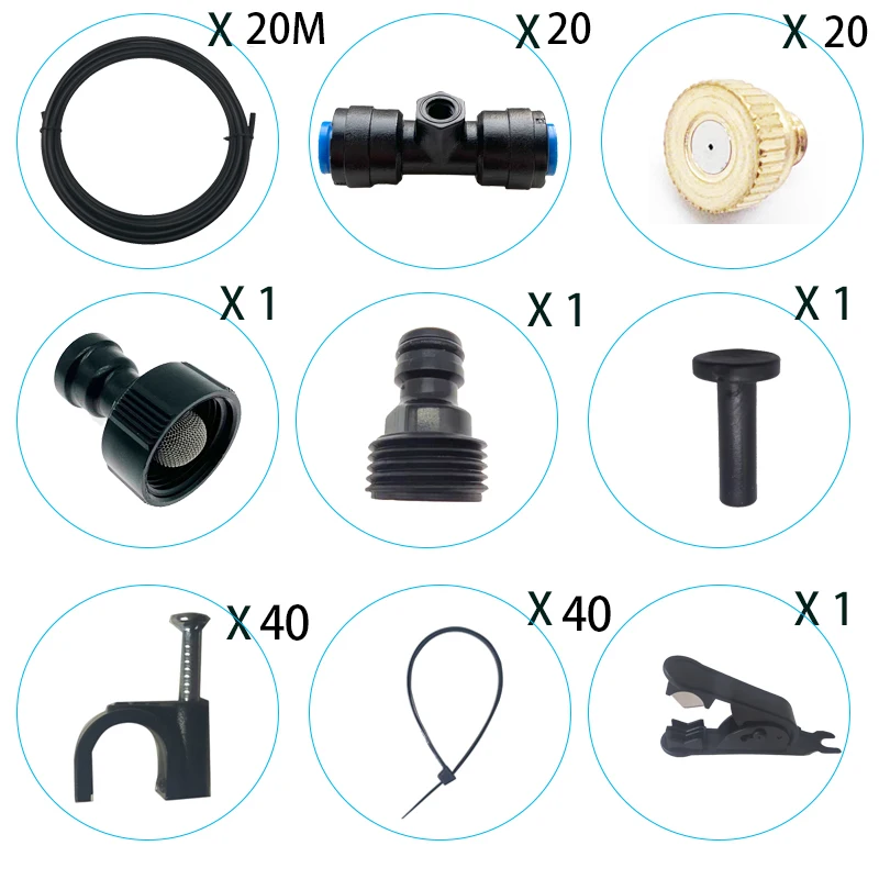 Система водяного распыления сделай сам, комплект системы охлаждения для теплиц, садов, патио, растений, орошения, противотуманных насадок, 10 м, 15 м, 20 м