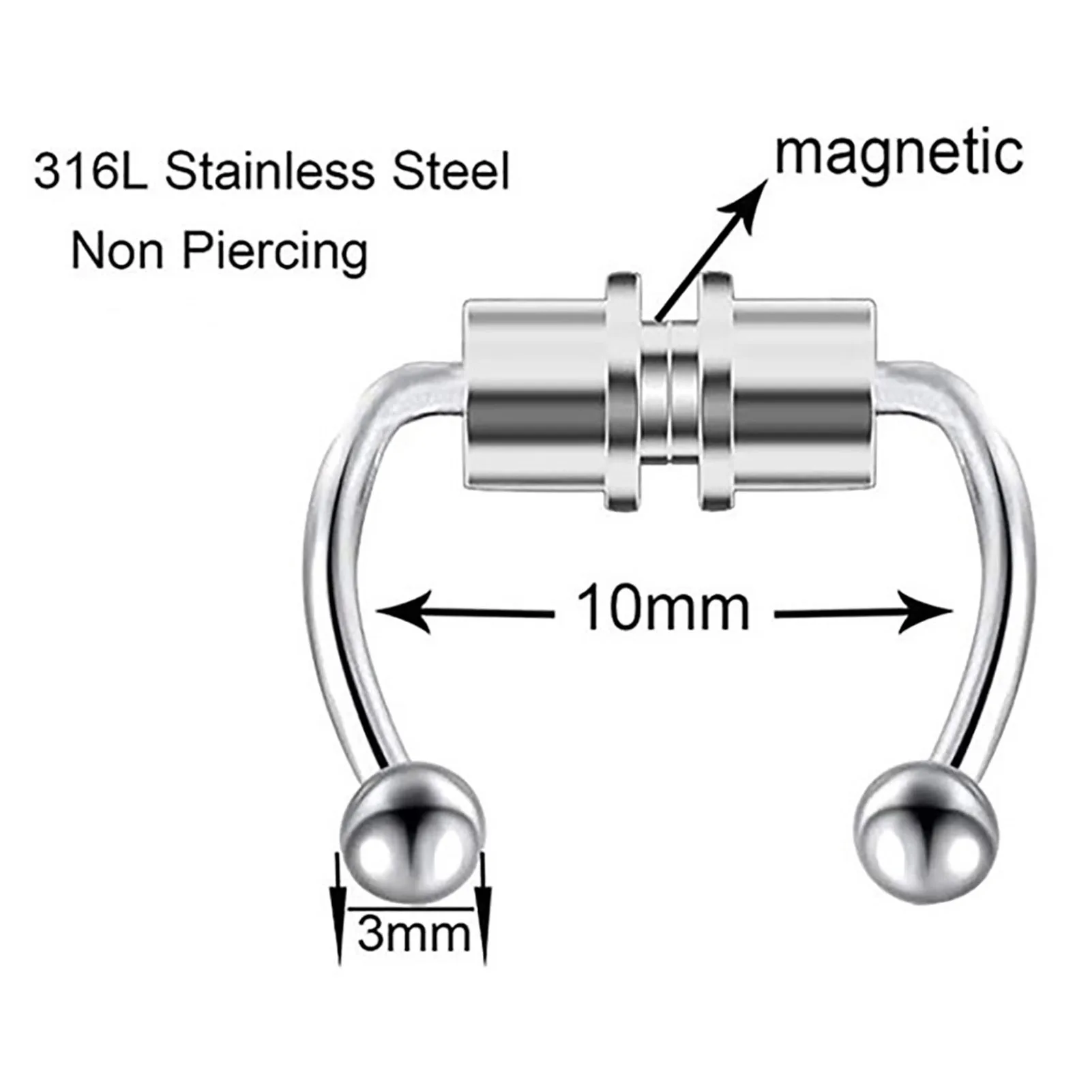 Кольцо для носа многоразовое сплав Поддельные магнитные подковы не пирсинг кольцо вечерние барОписание:Благодаря магнитному дизайну это кольцо для носа более удобно носить и не отвалится.Вы станете более привлекательной в толпе, когда носите Это очаровательное и прохладное кольцо в носу.Кольцо для носа изготовлено из сплава, износостойкое, прочное и не содержит никеля.Длина этого кольца для носа 1 см, ширина 1 см, высота 0,3 см.Подходит вечерние, баров, покупок, путешествий, свадеб и так далее.Название товара: кольцо в носМатериал: сплавПол: унисексТолпа: взрослыйРазмер: 1 см x 1 см x 0,3 см/дюйма x дюймаПримечания:Из-за разницы в освещении и настройках экрана цвет изделия может немного отличаться от изображения.Возможны незначительные различия в размерах из-за различий в измерениях вручную.Посылка входит:1 х кольцо в нос