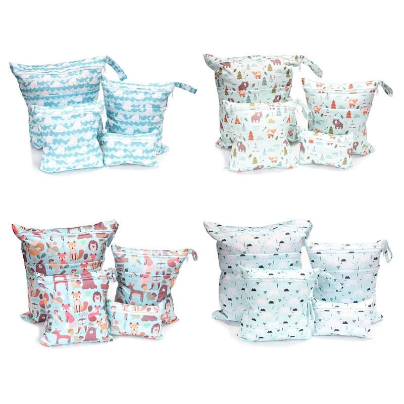 4 шт.компл. Мода пеленки с рисунком для малышей сумки для хранения Многоразовые моющиеся Водонепроницаемый для влажной и сухой ткани Органайзер за кожей Буд с застежкой-молнией