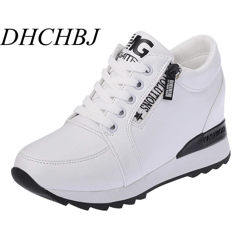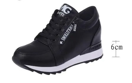 Новинка 2019 года; Сезон осень; Черные и белые повседневные туфли на скрытой танкетке; Весенние женские ботинки на высоком каблуке; Женские кроссовки на каблуке 6 см