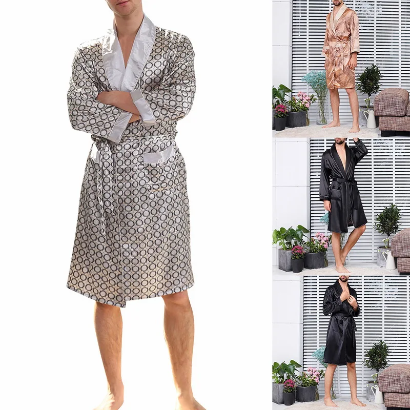 2021 Весенняя Мужская Черная домашняя пижама ночная рубашка из искусственного шелка для мужчин, удобные шелковистые халаты, благородный халат, мужские ночные халаты