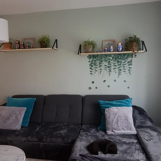 Я люблю это, это действительно красиво, оно очень хорошо одевается под моим полкой. Я не ставил все, чтобы адаптировать его к размеру, который мне был нужен, и я не положил бабочки. Несмотря на мою уже зеленую стену, мы все еще видим лист. Я очень доволен.