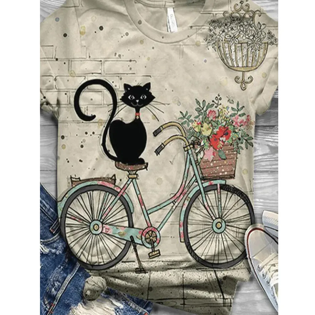 Футболка женская с 3D-принтом животных, модная тенниска с коротким рукавом и круглым вырезом, майка в стиле Харадзюку, большие размеры, на лето