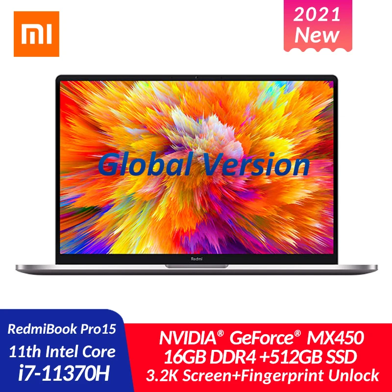 Оригинальный ноутбук Xiaomi RedmiBook Pro 15, ноутбук с процессором Intel Core i7-11370H, MX450, 16 ГБ DDR4, 512 Гб SSD, экран 15,6 дюйма, 90 Гц, 3,2 K