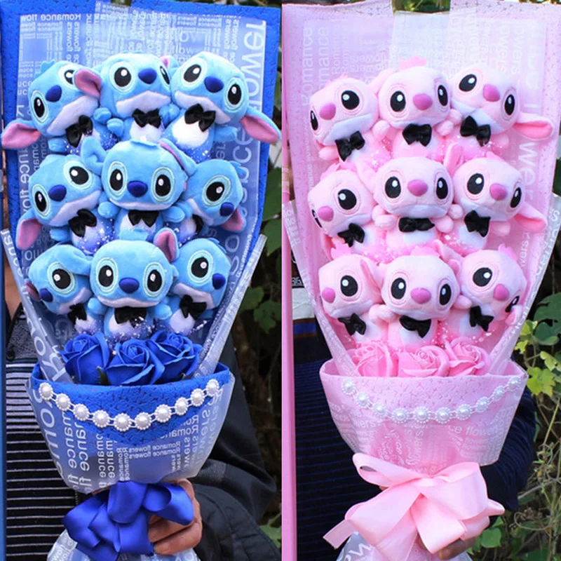 Милая плюшевая игрушка Лило Стич, миниатюрный букет, плюшевая кукла...