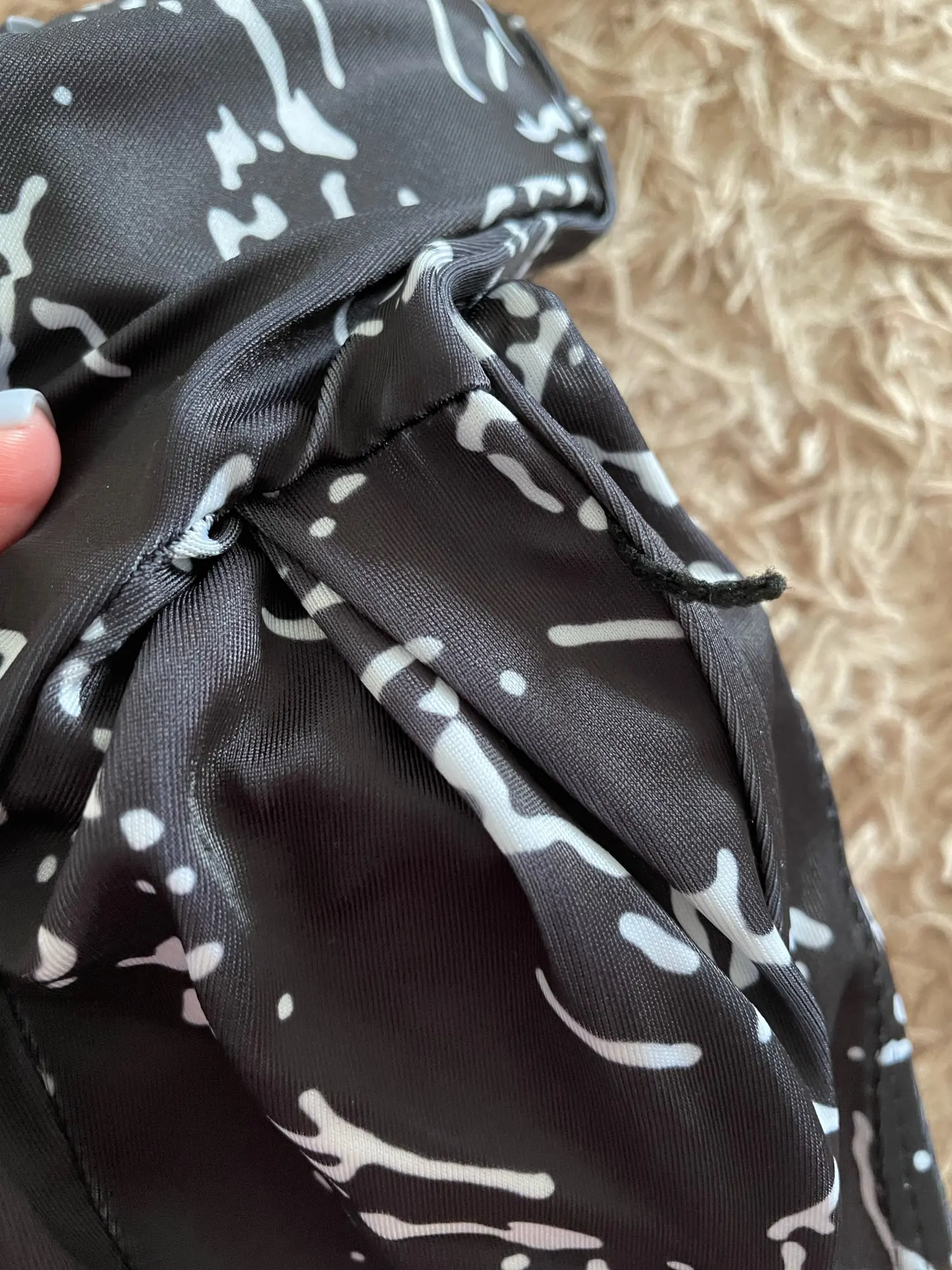 Доставка около месяца. Ткань неплохая, нет запаха. Лиф не на косточках, без чашек, просто ткань. Есть недочеты по пошиву-разошёлся шов прям посреди лифа и торчат остатки ниток. Есть вкладыши, но для таких размеров они вряд ли помогут поддержать грудь.