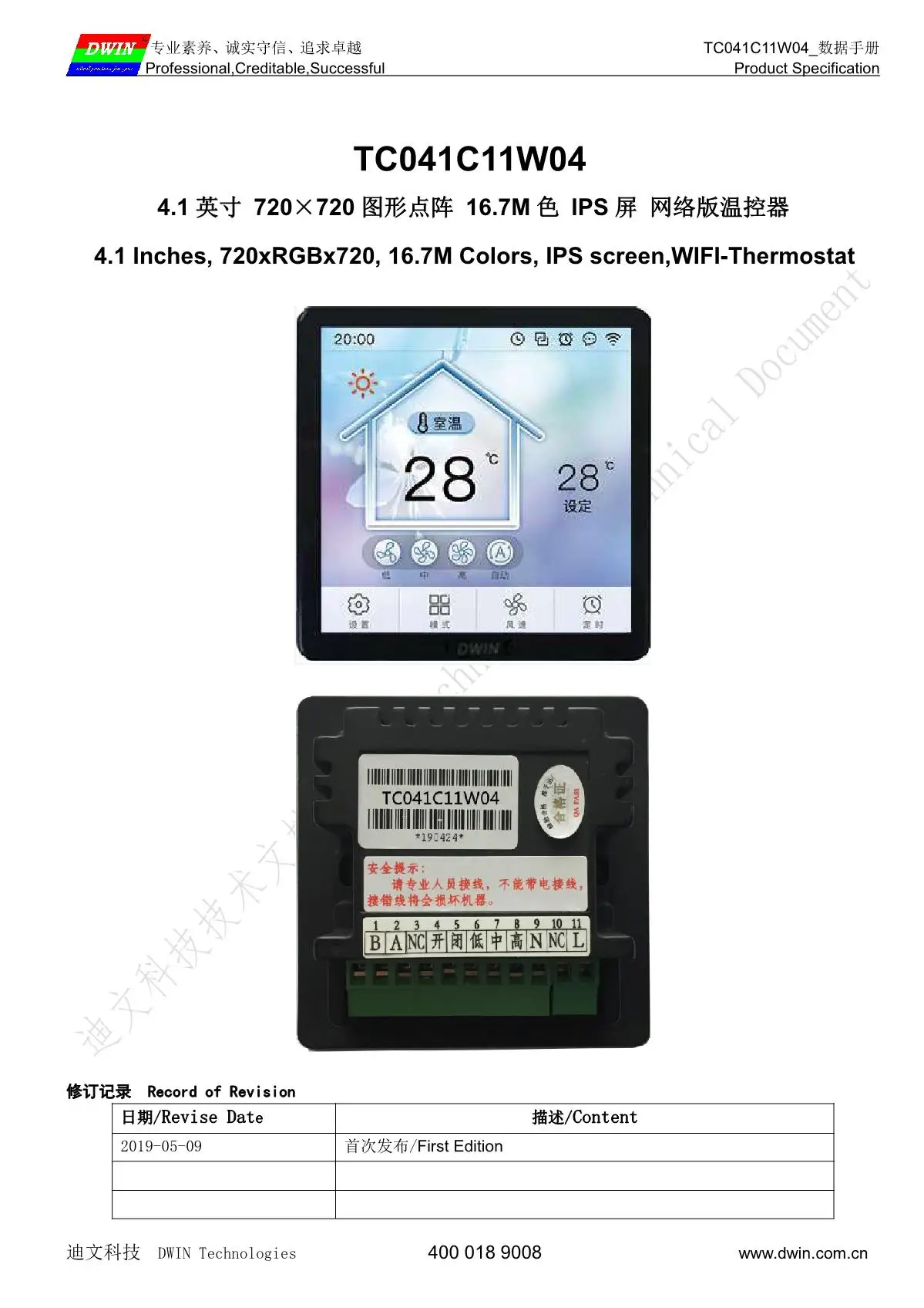 DWIN 4,1 дюймов Wi-Fi терморегулятор ЖК-дисплей сенсорный Панель умный дом 720*720 настенный дисплей HMI на тонкопленочных транзисторах на тонкоплёночных транзисторах "умный экран дисплея