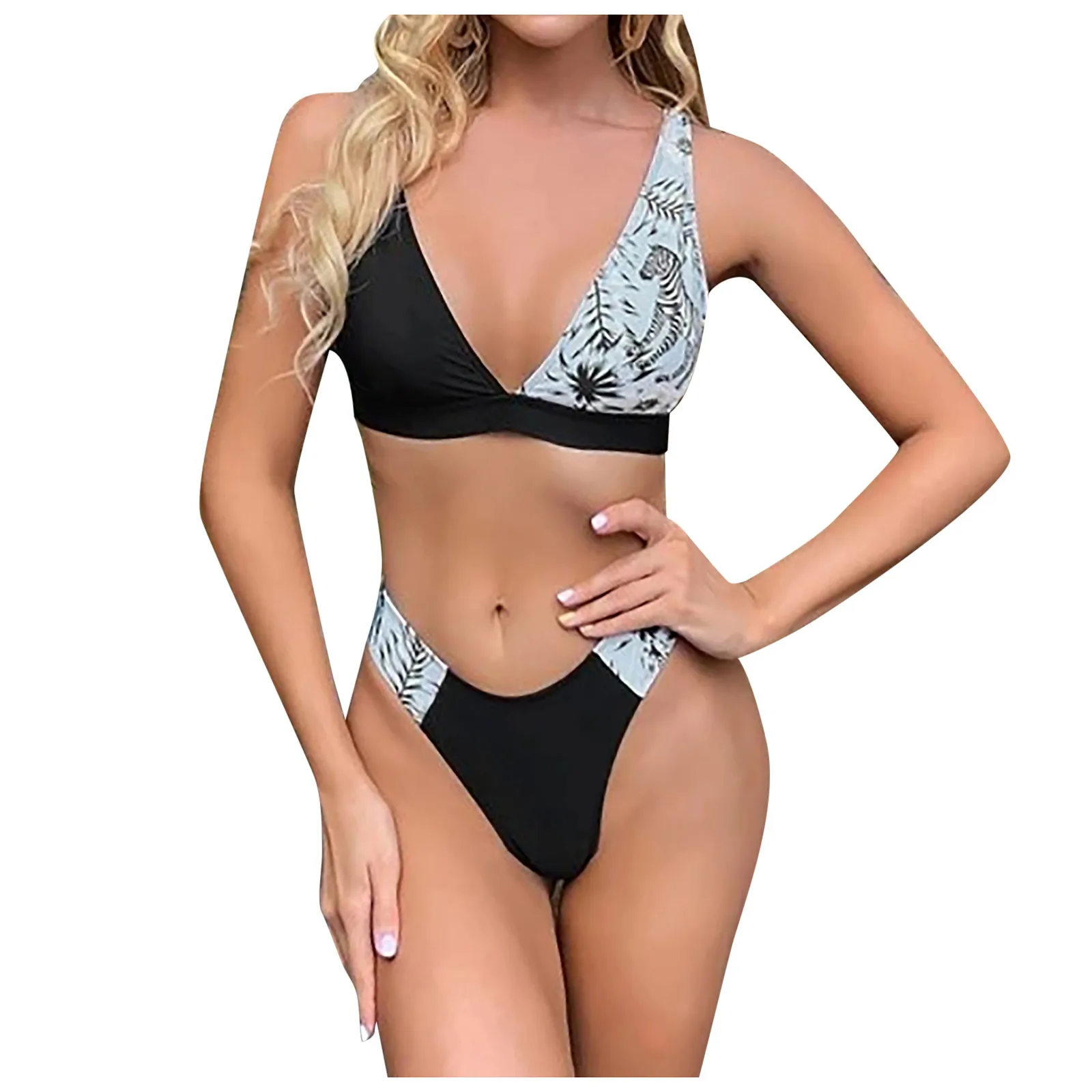 Женский пикантный комплект бикини с высокой грудью контрастный град...