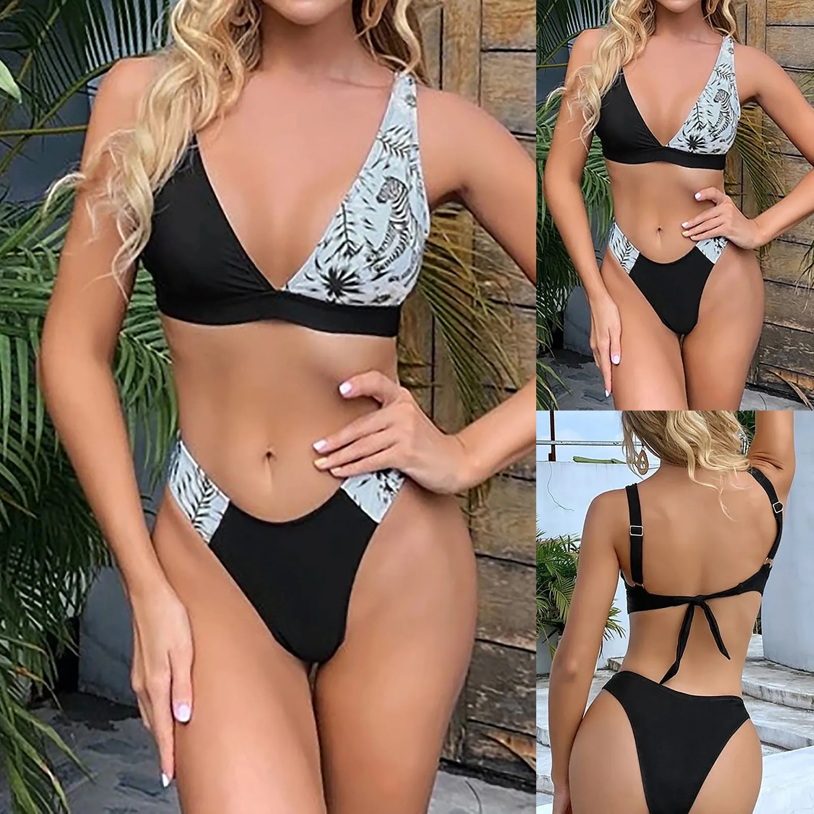 Женское бикини с принтом, с завязкой на шее, бандажный купальник с ...
