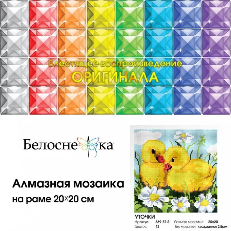 "Уточки" Алмазная мозаика на подрамнике 20х20 см. Белоснежка. 369-ST-S