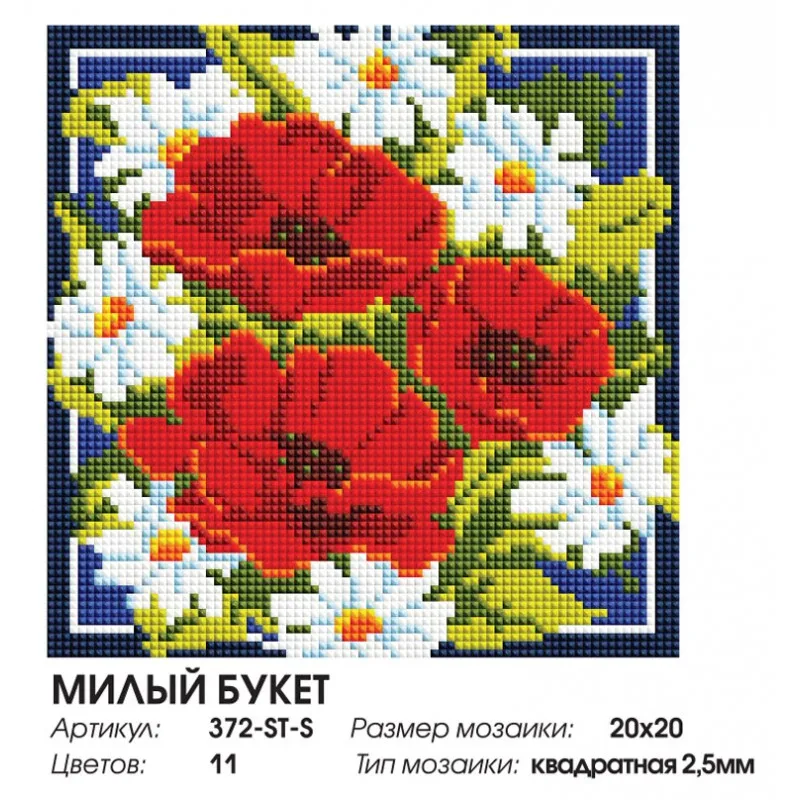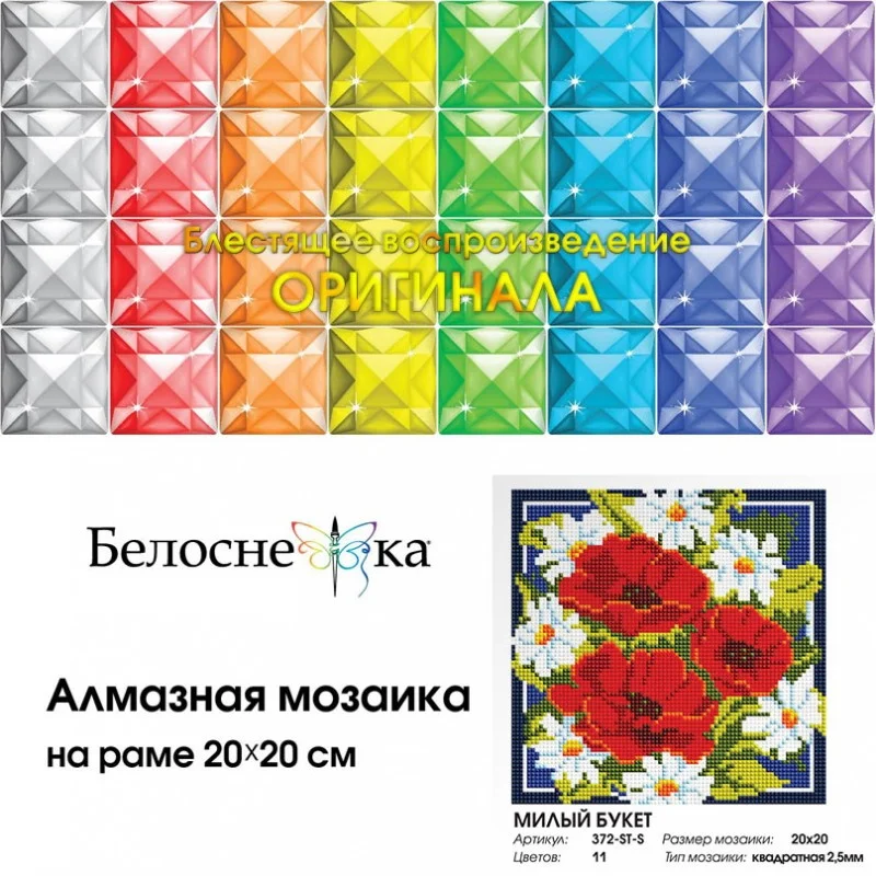 "Милый букет" Алмазная мозаика на подрамнике 20х20 см. Белоснежка. 372-ST-S