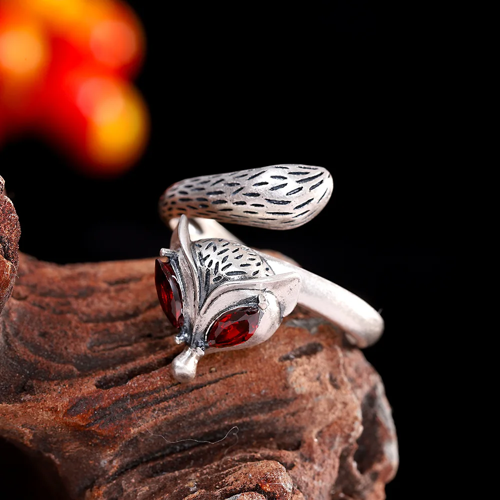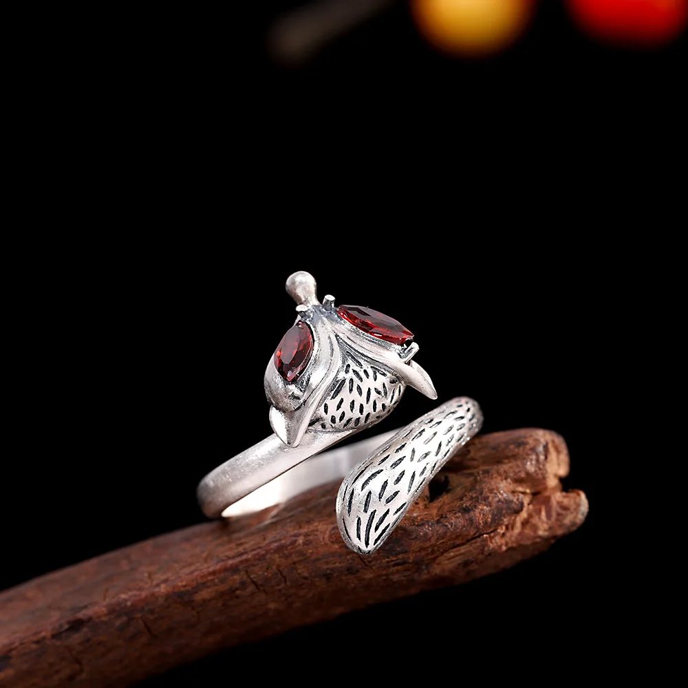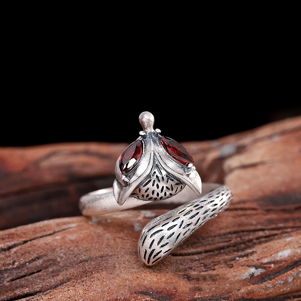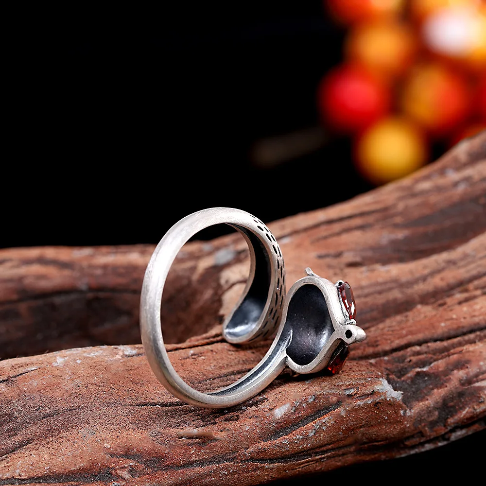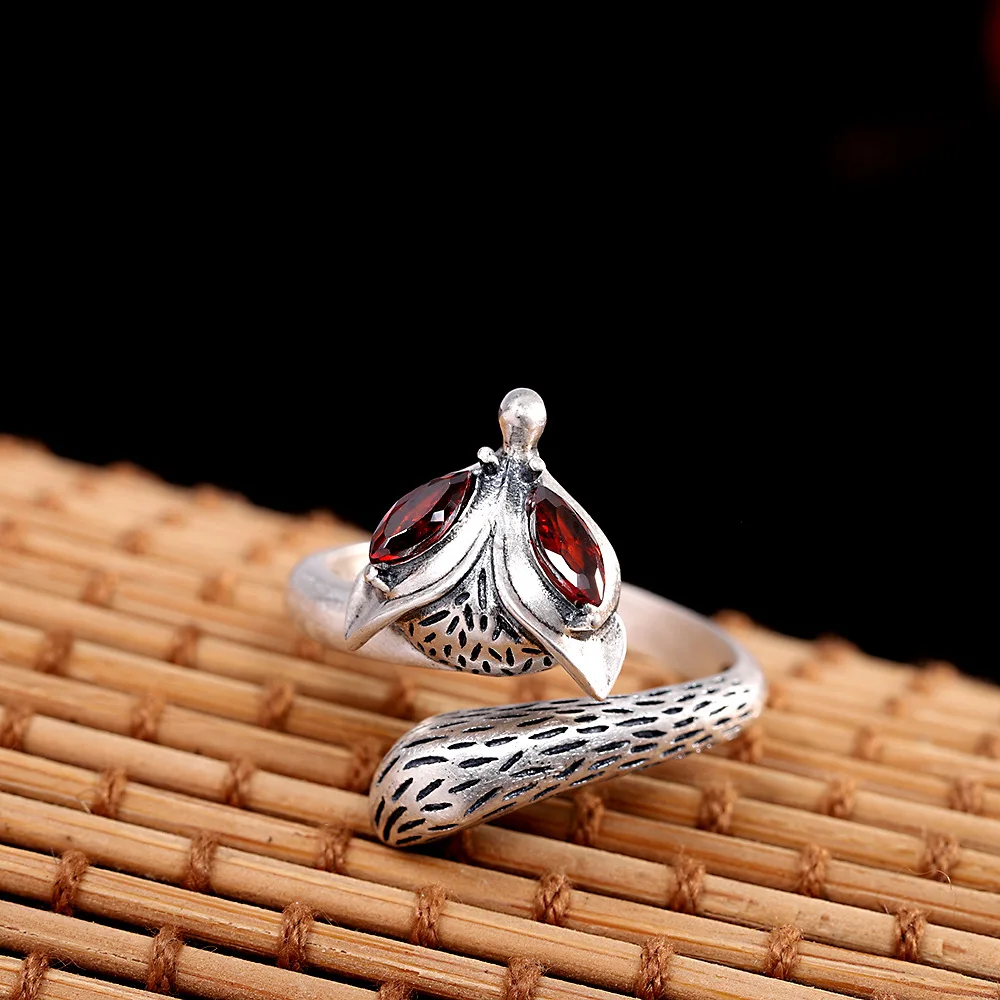 Кольцо женское из серебра 925 пробы, ручной работы, с гранатом