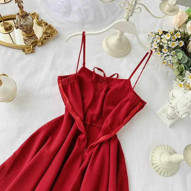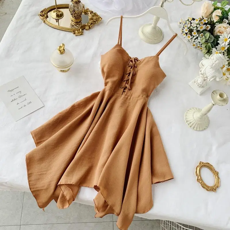 Платье Zcwxm женское на бретелях, пикантное с V-образным вырезом, без рукавов, с завышенной талией, с поясом, на лето 2021