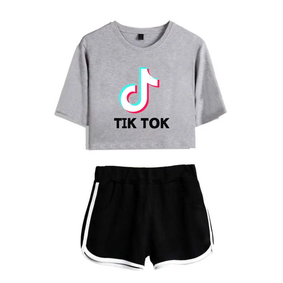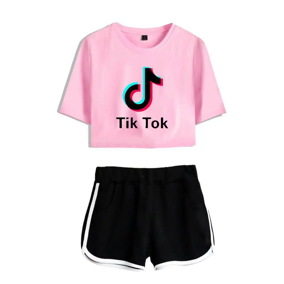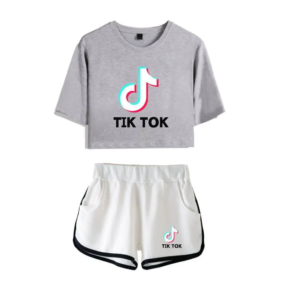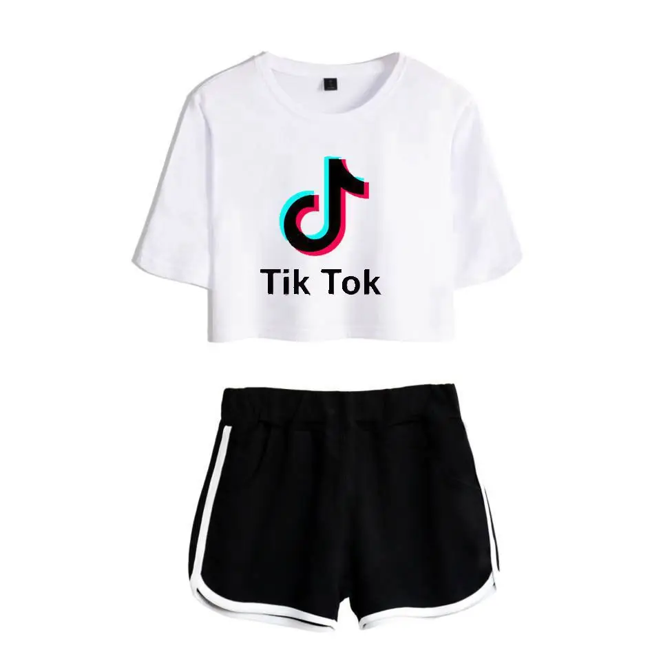 Tik Tok для женщин из двух частей комплект шорты + Милая футболка л...