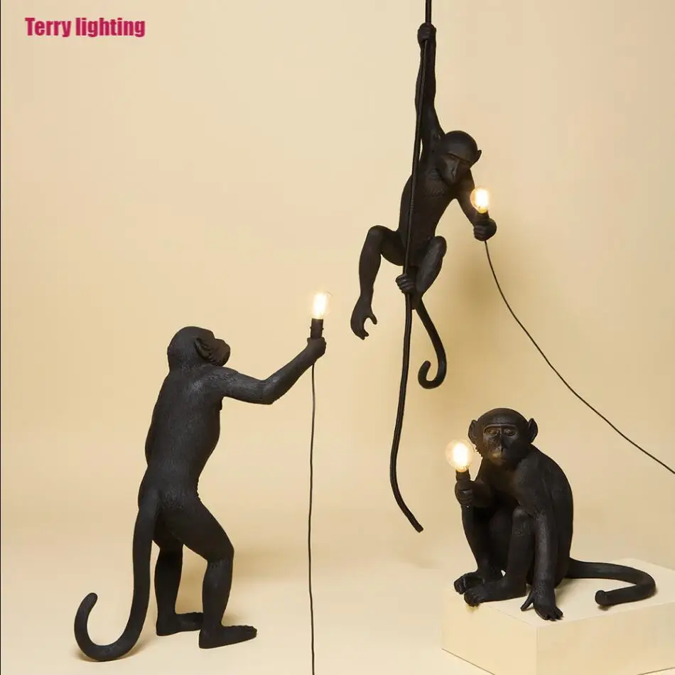 Внутренняя люстра из смолы в форме обезьяны, золотой, черный, белый светодиодный светильник для гостиной, кабинета с лампой E27