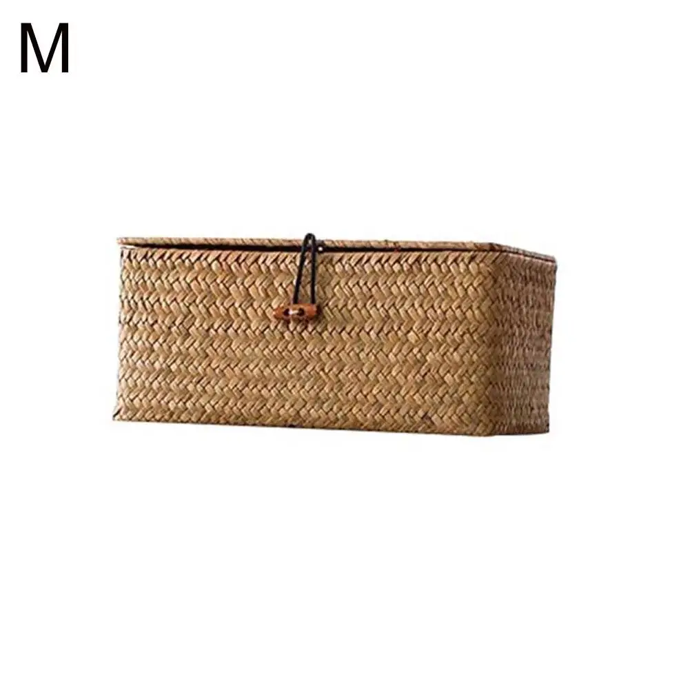Плетеная корзина для хранения с крышкой, коробка для хранения мелочей из ротанга, плетеная корзина, сортировочные коробки, органайзер для украшений из морских водорослей