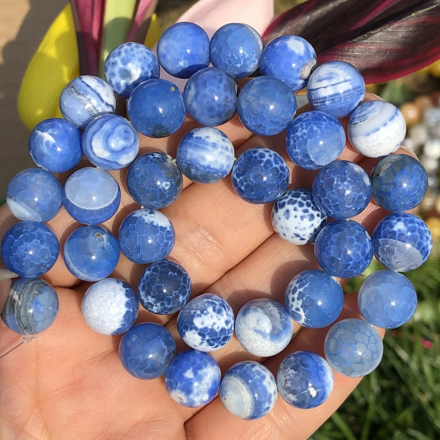 Бусины Из Натурального синего агата с отверстием россыпью для изготовления ювелирных изделий сделай сам, бусины для ожерелий и браслетов 15 дюймов, 6810 мм