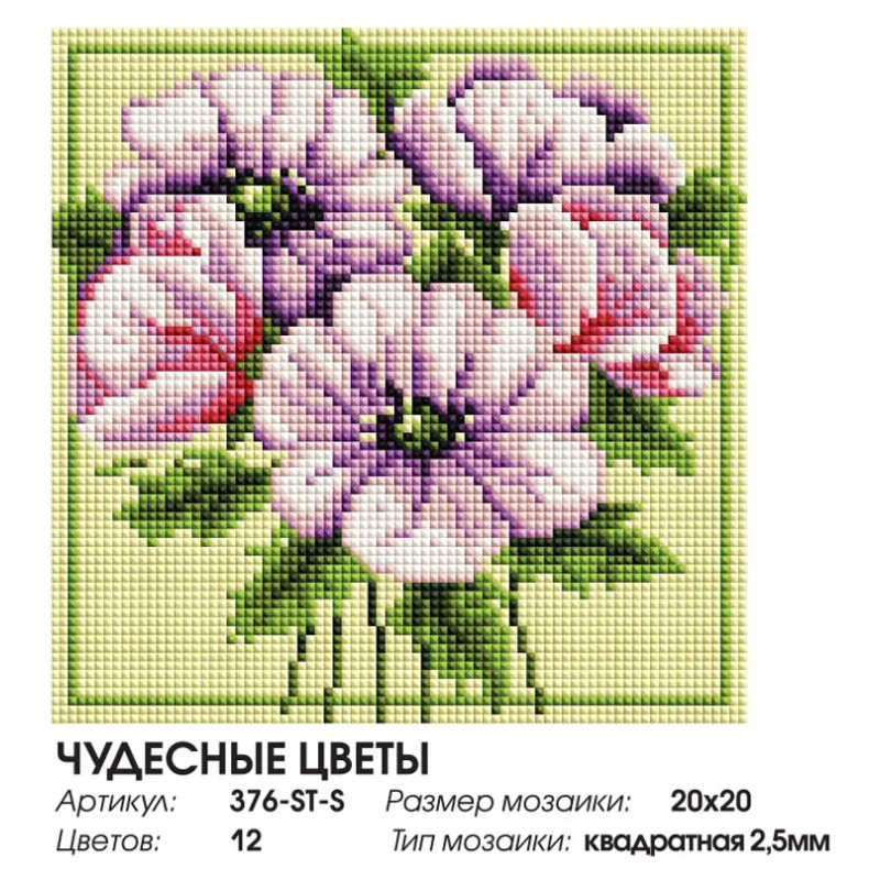 "Чудесные цветы" Алмазная мозаика на подрамнике 20х20 см. Белоснежка. 376-ST-S