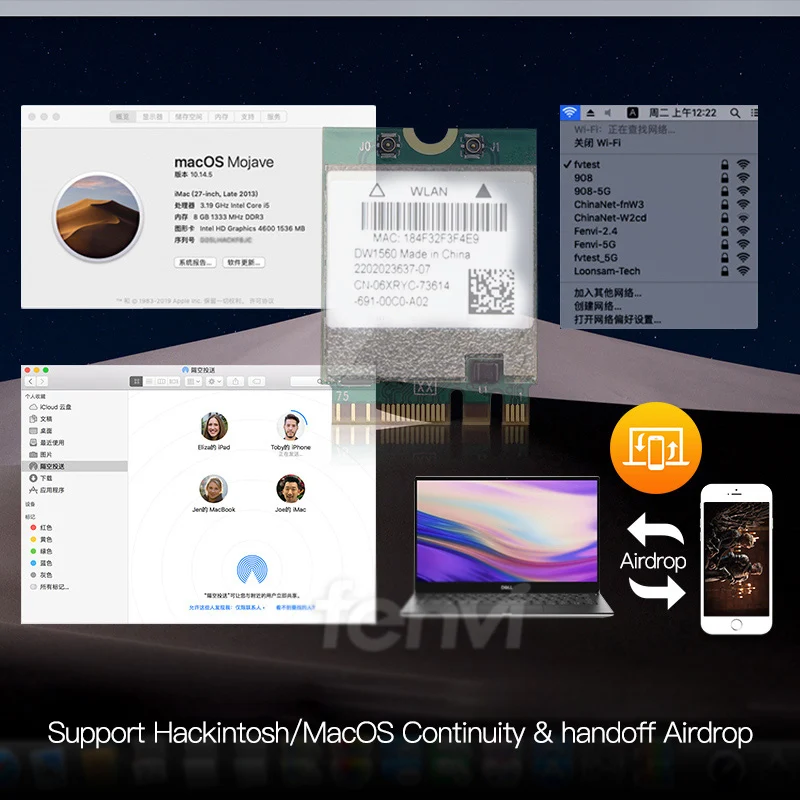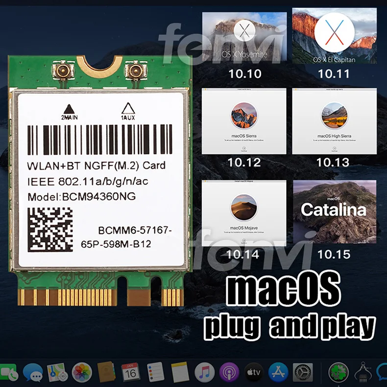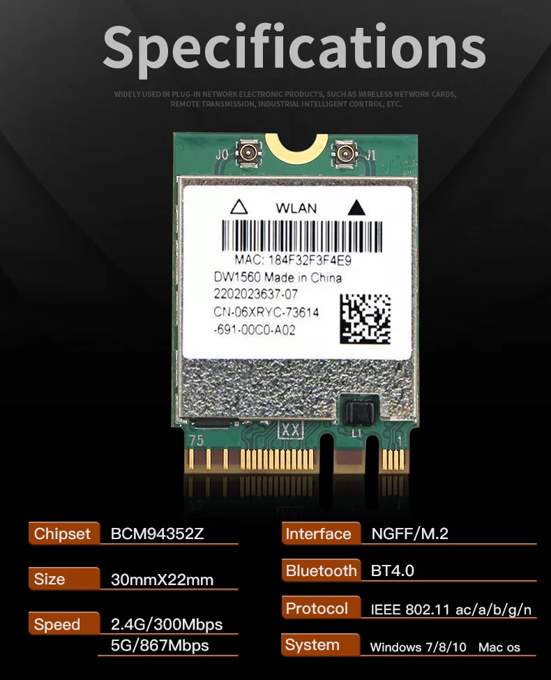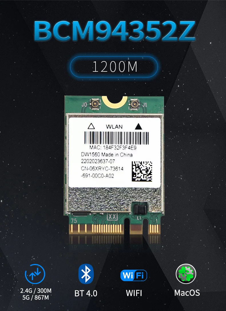 Оригинальная Двухдиапазонная WLAN-карта DW1560 BCM94352z 200 Мбитс Bluetooth 4,0 802.11ac BCM94360NG NGFF M.2 для ноутбука Windows macOS