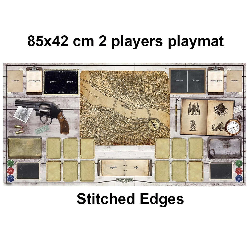 Игровой коврик Аркхэм хоррор 2 игрока, Настольный коврик для настольных игр, большой коврик для мыши, пользовательский игровой коврик для TCG, игровой коврик для торговых карт с прошитыми краями