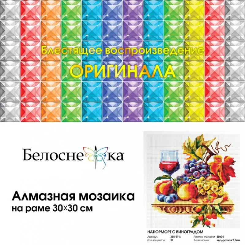 "Натюрморт с виноградом" Алмазная мозаика на подрамнике 30х30 см. Белоснежка. 355-ST-S