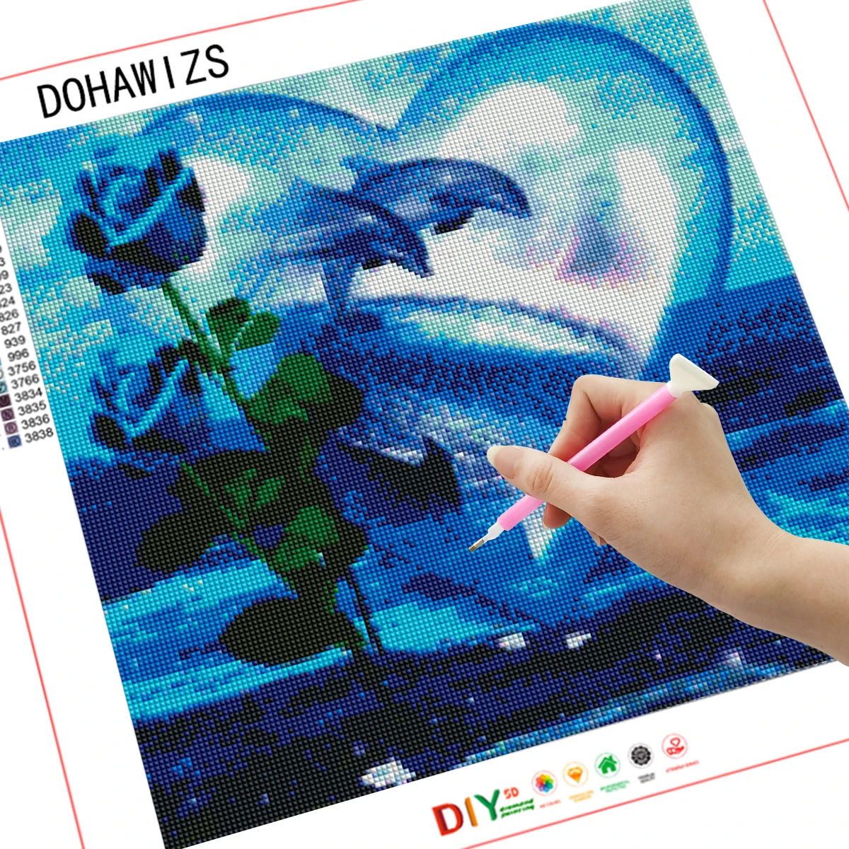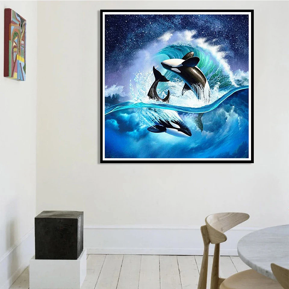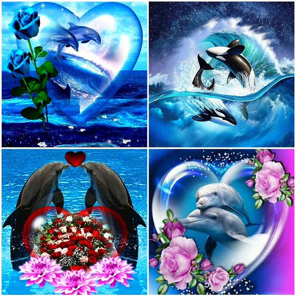 Алмазная вышивка 5D, квадратные круглые животные, дельфины, алмазная живопись, стразы, мозаика для домашнего декора