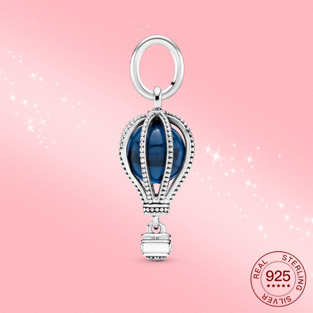 Подвеска из настоящего серебра 925 пробы с синим воздушным шаром, ожерелье с кулоном для женщин, браслет, ювелирные изделия сделай сам