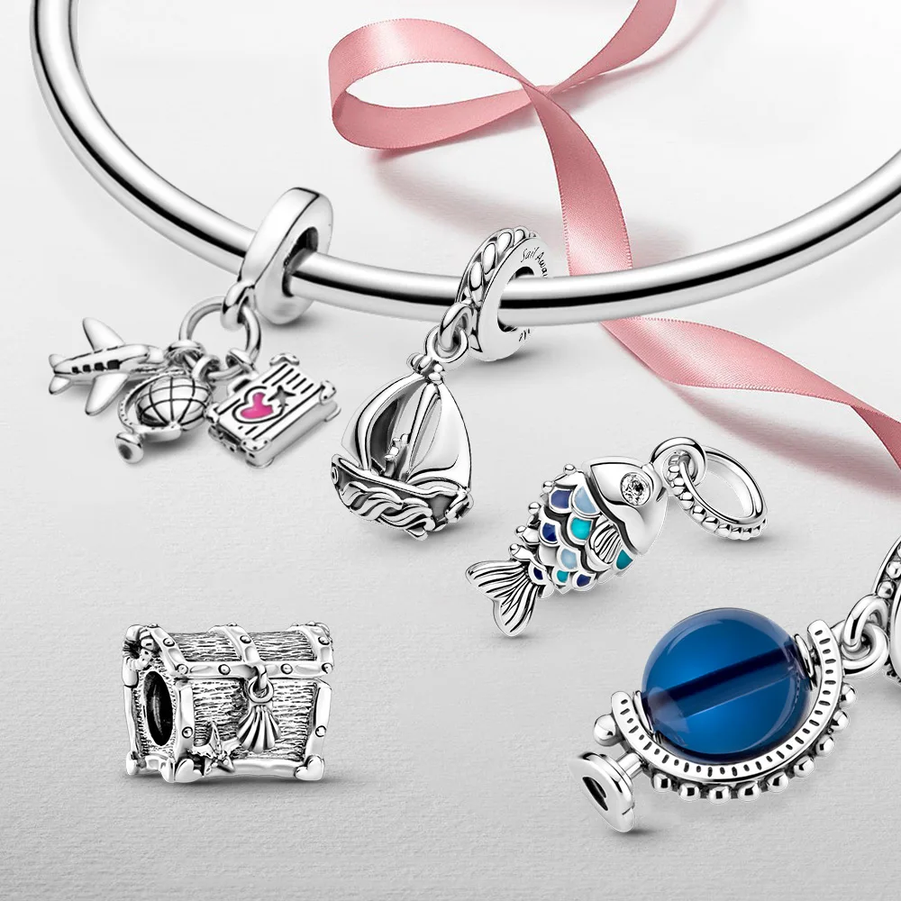 925 Doflamingo Шарм рука Фатимы сглаза и перо кулон 925 Стерлинговое Серебро Шарм fit оригинальный браслет Пандора для женщин