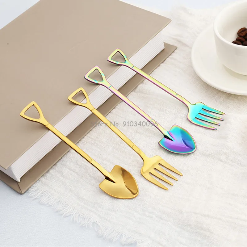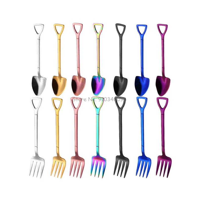 10 шт., креативная лопатка-вилка, ложка из нержавеющей стали 304, вилка, мороженое, десерт, кофе, ложка, вилка для фруктов, чайная ложка, ложка для перемешивания
