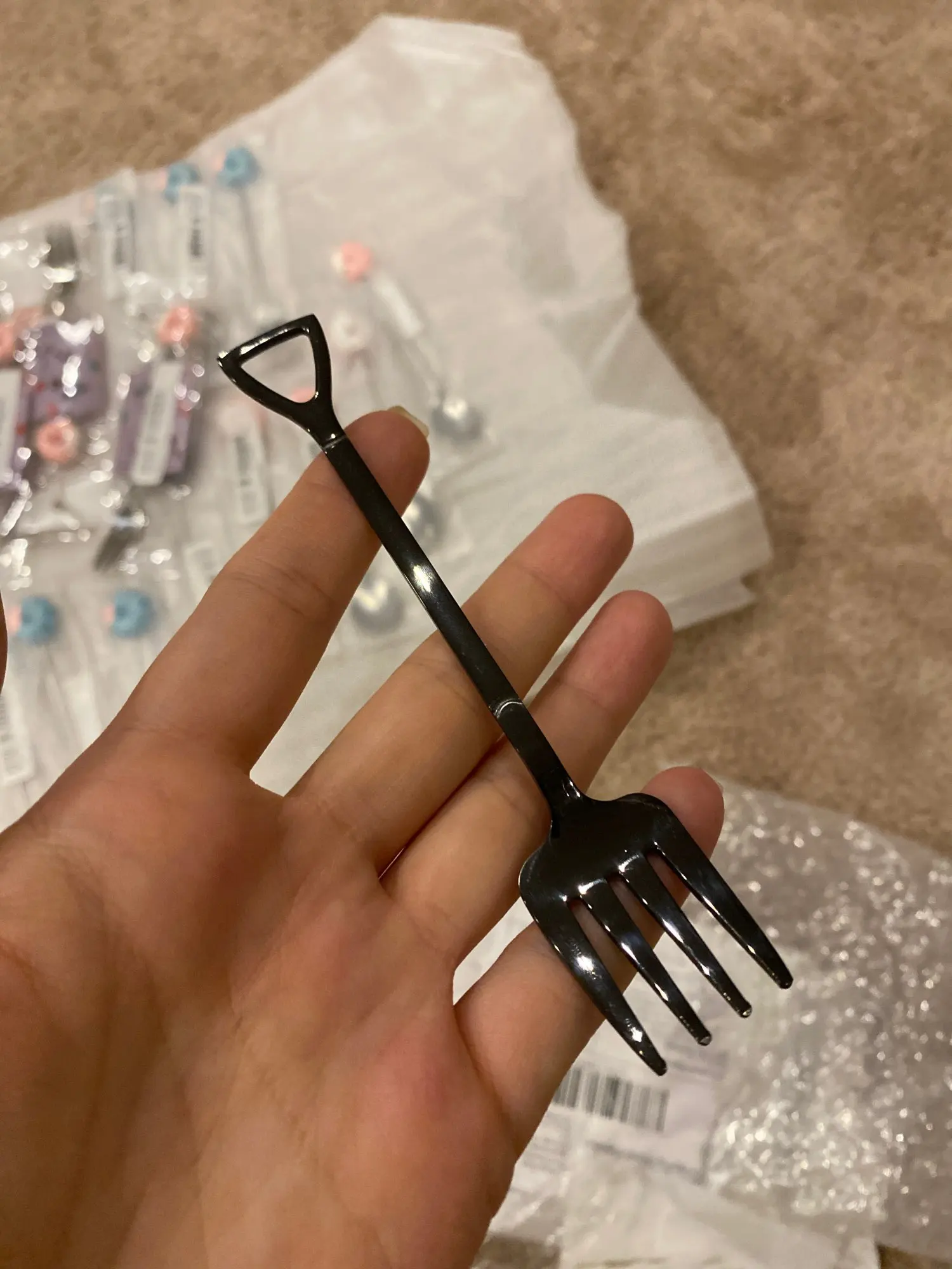 Вау быстрая доставка, Товары хорошие, Однако они очень маленькие, Вилка, кажется, работает, но ложка больше Нравится ребенку, lol действительно!