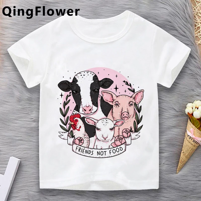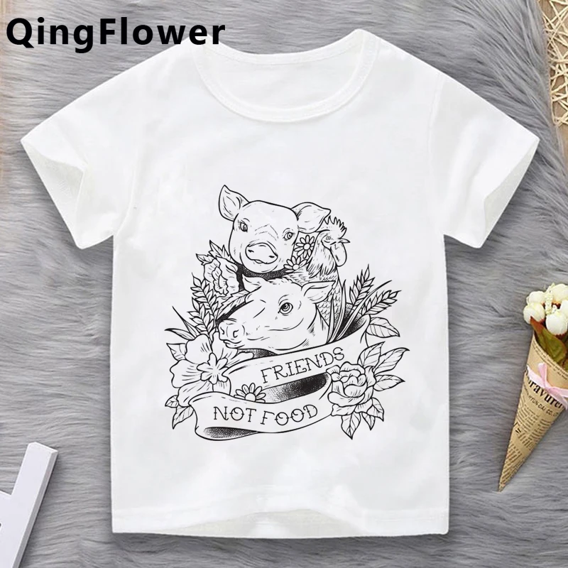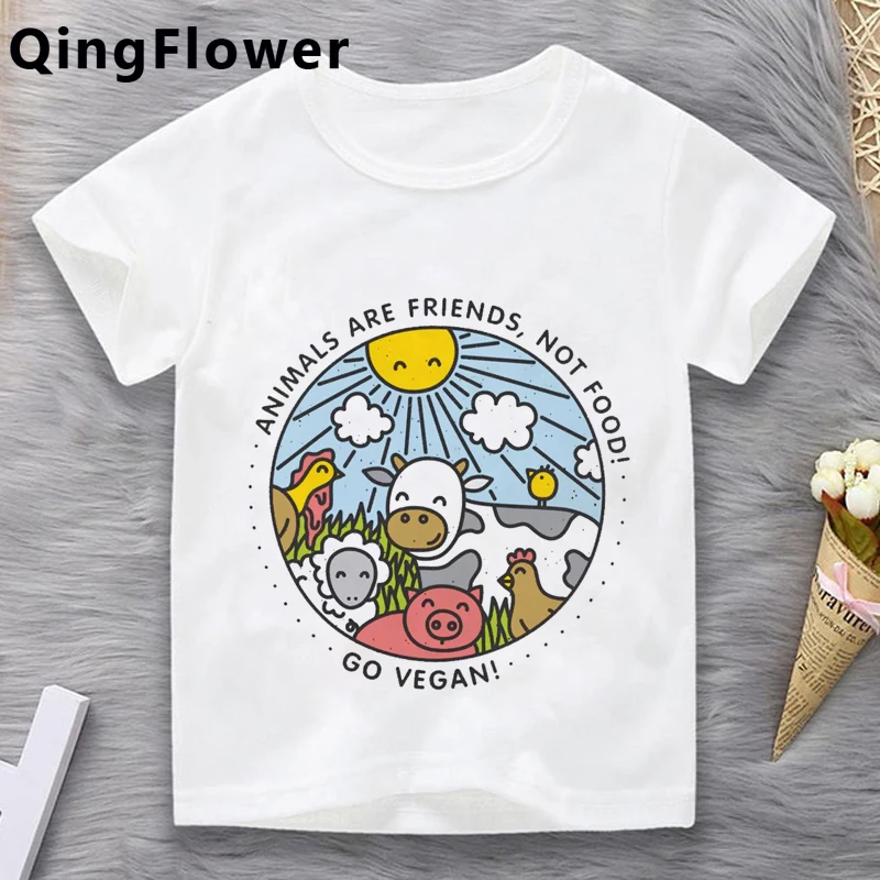 Одежда для девочек-веганов, Детская футболка, графический дизайн, милая мультяшная футболка roupa crianca, короткая футболка для девочек
