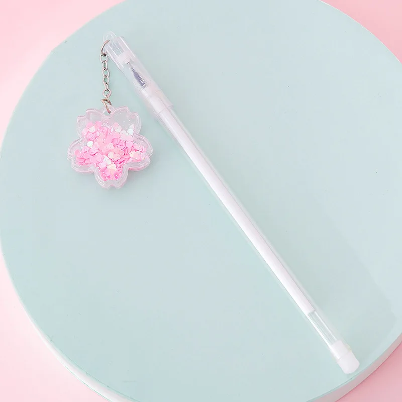 Подвеска с блестками и вишневым цветком, гелевая ручка с подвеской,...