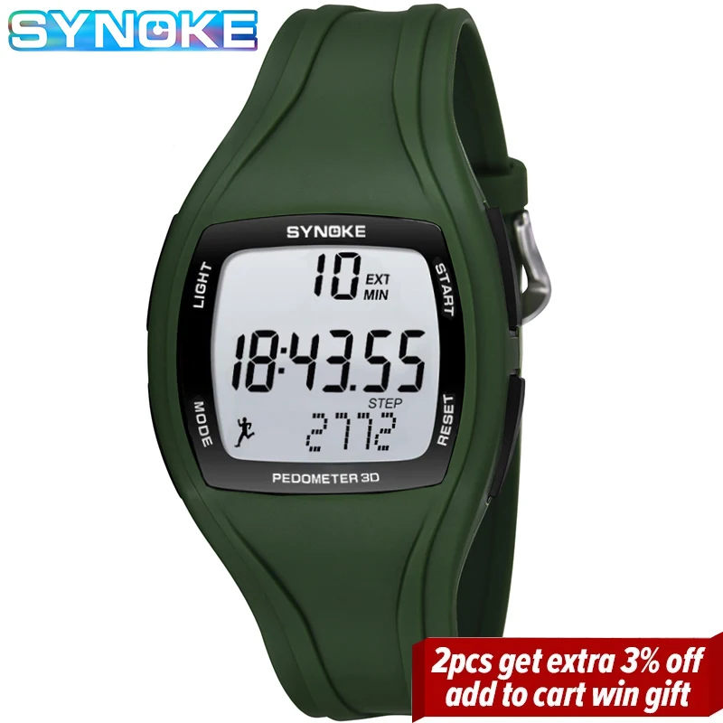 Часы наручные SYNOKE мужские с шагомером, брендовые цифровые спортивные в стиле милитари, с хронографом, водонепроницаемость 50 м