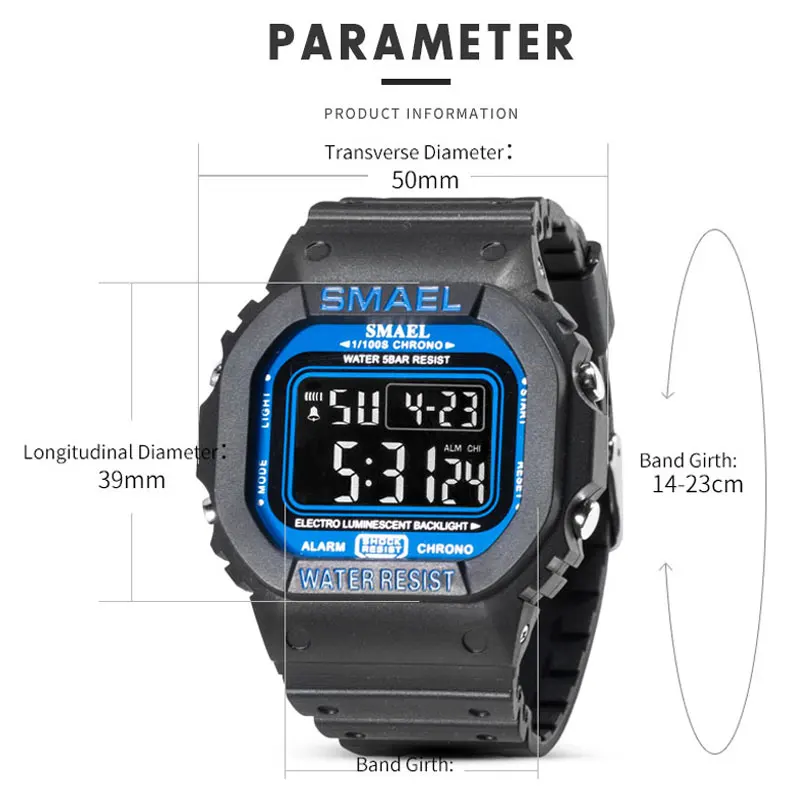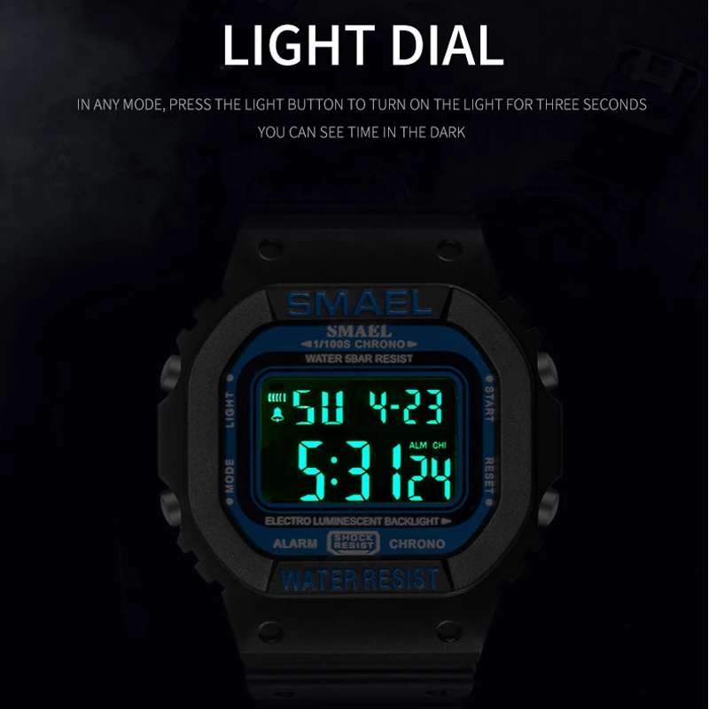 Часы SMAEL мужские наручные цифровые, многофункциональные спортивные ударопрочные, в стиле ретро, 1801