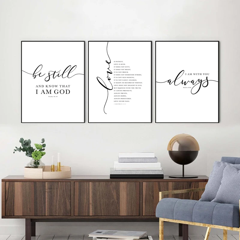 Настенные плакаты и принты стих из Христианской Библии с цитатами, черные и белые настенные картины с надписью Христос, настенная Картина на холсте, домашний декор