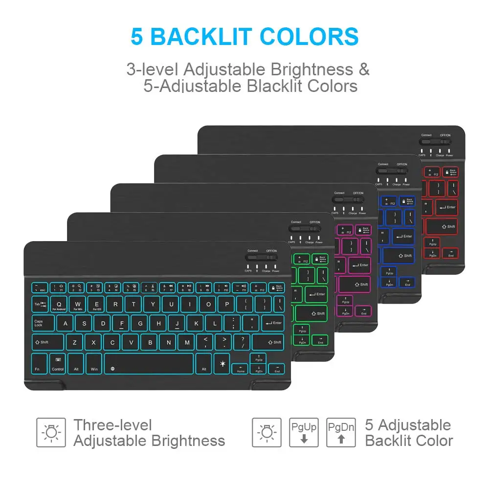 Ультратонкая Беспроводная Bluetooth-клавиатура с русской и испанской раскладкой и светодиодной подсветкой, 7 цветов, для iPad mini 7,9, клавиатура для Android и Windows